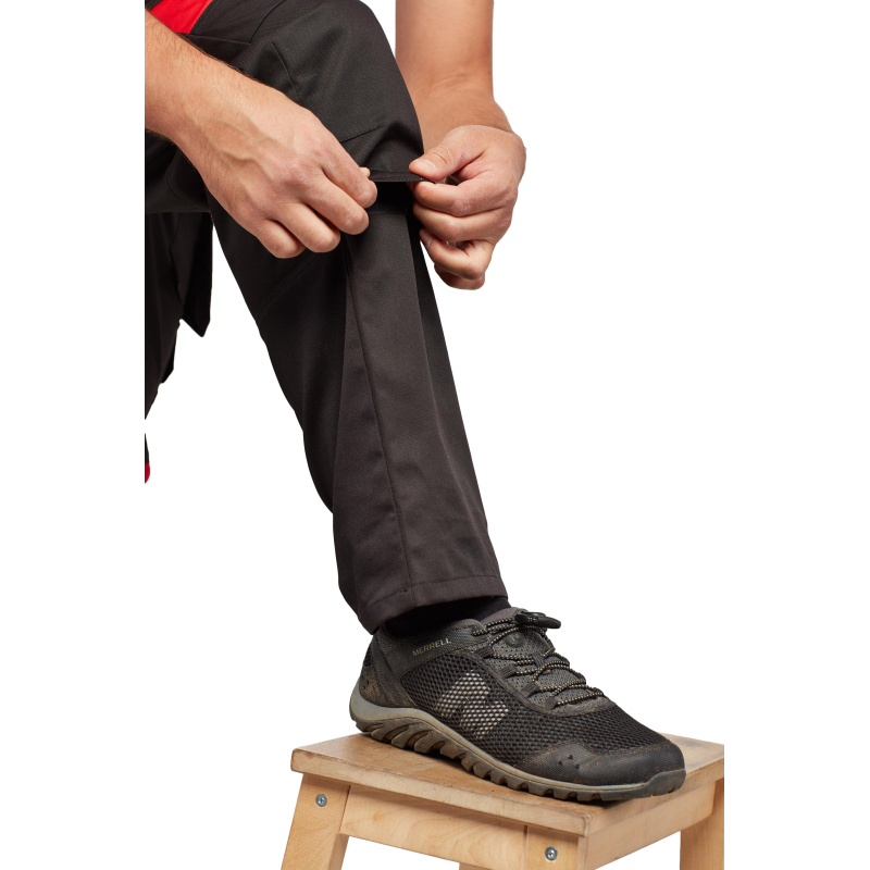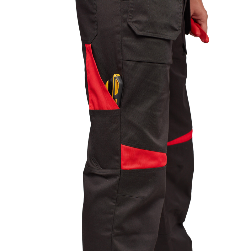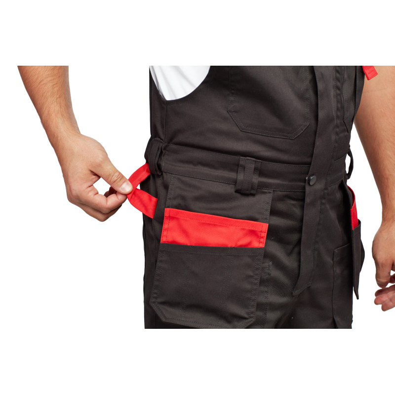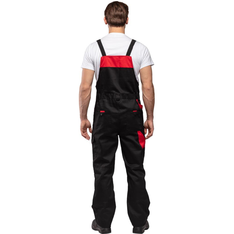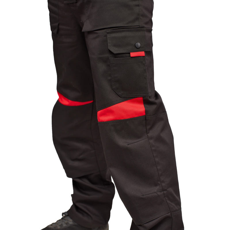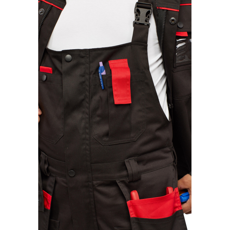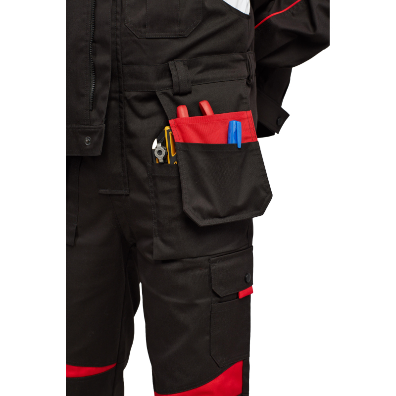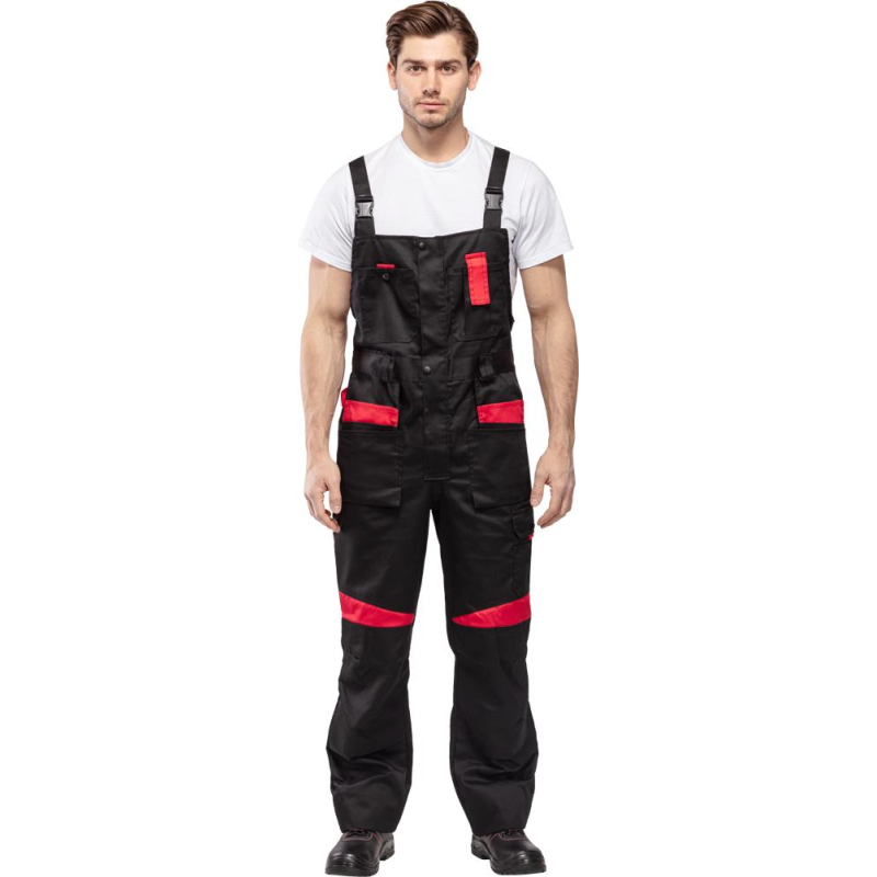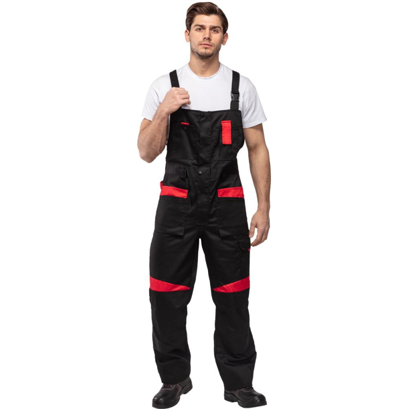 Спецодежда летняя костюм мужской л29-КПК состоит из укороченной куртки на поясе, и полукомбинезона. Куртка имеет центральную застежку на молнию, закрытую планкой на кнопках. Куртка имеет 2 верхних накладных фигурных кармана, застегивающихся на кнопку. На левом верхнем кармане дополнительно настрочен карман под бейдж. В нижней части куртки располагаются 2 вместительных накладных кармана с боковым входом. Куртка имеет складки на спине для свободы движения. На локтях имеются усиления. Пояс куртки регулируется патами на кнопках. Полукомбинезон с высокими грудкой и спинкой, бретели имеют вставки из резинки, регулируются по длине и застегиваются на фастексы. Застежка полукомбинезона на молнию, закрытую планкой на кнопках. По линии талии имеются двойные шлевки под ремень. На полукомбинезоне имеется множество функциональных карманов: накладные и навесные. В районе коленей имеются усиления со входом под амортизационные вставки. Цвет: черный с красной отделкой. Материал: 65% полиэстер, 35% хлопок. Плотность: 240 г/кв.м. Размер: 44-46. Рост: 182-188. Стандарт: ГОСТ 12.4.280-2014. Сфера применения: логистика , легкая промышленность , тяжелая промышленность , строительство , озеленение , автомобильная.Коллекция л29 представлена комплектами куртка и полукомбинезон л29-КПК в двух вариантах расцветки: черный с красной отделкой и темно-серый с отделкой ярко-оранжевого цвета.