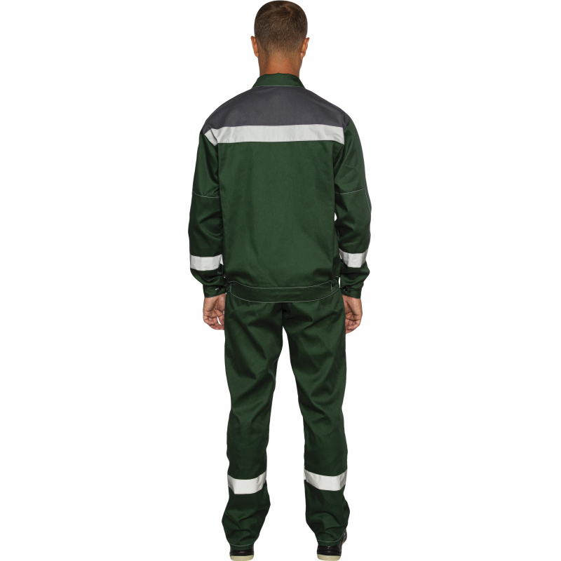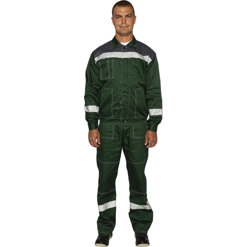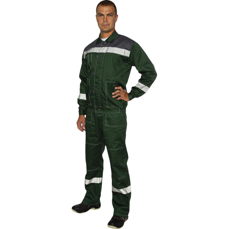 Спецодежда летняя костюм мужской л20-КПК состоит из куртки и полукомбинезона. Изготовлен из смесовой ткани (65% полиэстер, 35% хлопок), плотностью 210 г/кв.м. Полукомбинезон с накладными карманами, гульфиком на пуговицах, эластичной тесьмой по талии спинки и регулируемыми бретелями. Куртка прямого силуэта c объемными накладными карманами и супатнoй застежкой на пуговицы. Куртка и полукомбинезон оснащены светоотражающей полосой. Сфера применения: озеленение. Размер: 56-58. Рост: 158-164. ЗАКОНОДАТЕЛЬНЫЕ И ТЕХНИЧЕСКИЕ ДОКУМЕНТЫ: