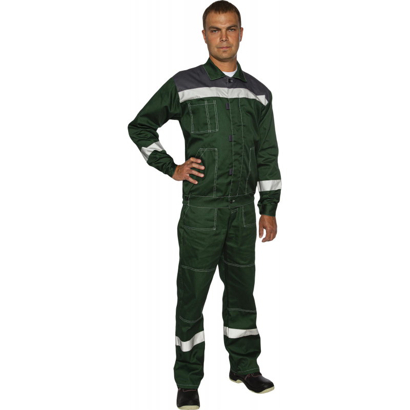 Спецодежда летняя костюм мужской л20-КПК состоит из куртки и полукомбинезона. Изготовлен из смесовой ткани (65% полиэстер, 35% хлопок), плотностью 210 г/кв.м. Полукомбинезон с накладными карманами, гульфиком на пуговицах, эластичной тесьмой по талии спинки и регулируемыми бретелями. Куртка прямого силуэта c объемными накладными карманами и супатнoй застежкой на пуговицы. Куртка и полукомбинезон оснащены светоотражающей полосой. Сфера применения: озеленение. Размер: 60-62. Рост: 170-176. ЗАКОНОДАТЕЛЬНЫЕ И ТЕХНИЧЕСКИЕ ДОКУМЕНТЫ: