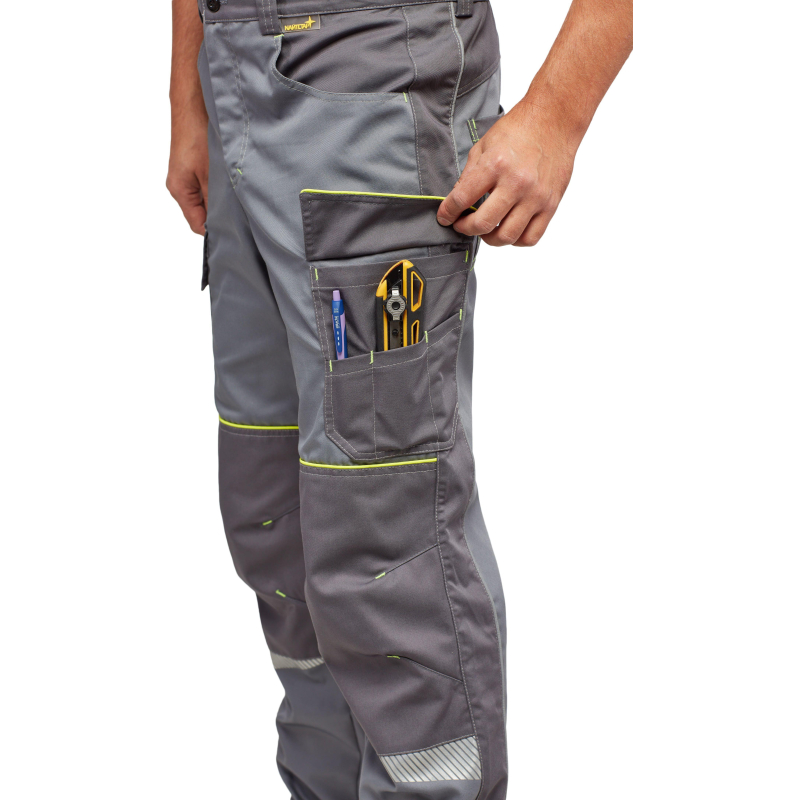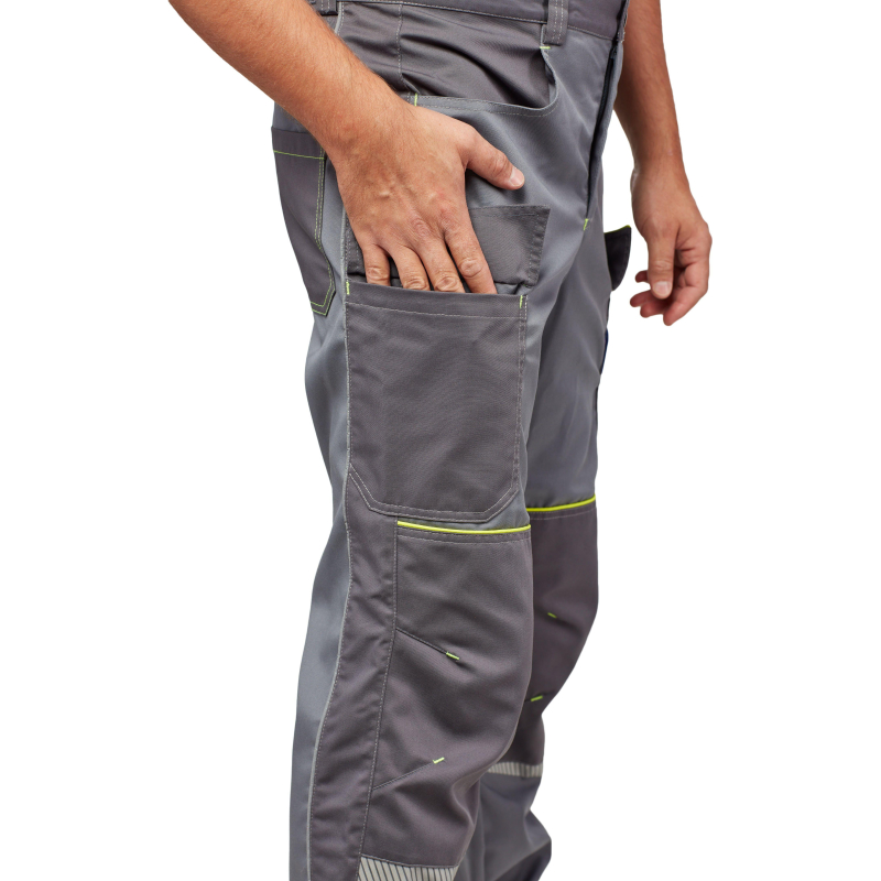 Брюки летние мужские из премиальной коллекции Nайтстар Проксима. Брюки выполнены из смесовой ткани Милан с несминаемой отделкой. Ткань Милан производства Argo Klopman, Италия, отвечает самым высоким требованиям стандартов Европейской текстильной ассоциации ETSA выдерживает многократные промышленные стирки при 75 (без усадки). Можно использовать химическую чистку. Материал не мнется и не требует глажения после стирки, не линяет. Имеет высокую стойкость на растяжение и к пилингу. Внешний вид одежды из ткани Милан не изменяется после многочисленных стирок. Спецодежда из нее комфортна, содержит достаточное количество хлопка для поглощения влаги, имеет уникальную конструкцию пряжи саржевого переплетения 2/1, через которую проникает максимально возможное количество воздуха для охлаждения тела и облегчения испарения влаги с поверхности кожи. Состав ткани: 65% полиэстер, 35% хлопок, плотность - 245 г/кв.м. Комфортный крой, брюки не стесняют движения. Поставляется в комплекте с регулируемым ремнем с пряжкой. На изделие также расположено несколько карманов - 4 кармана спереди и сзади и 2 дополнительных кармана с клапаном для мелкого инструмента. Усиленные наколенники. На брюках есть световозвращающие вставки и сигнальные канты лимонного цвета, которые обеспечивают видимость в темное время суток. Изделие изготовлено в соответствии со стандартами ГОСТ 12.4.280-2014, ТР ТС 019/2011. Используется в легкой, тяжелой промышленности, сборке оборудования, энергетике, добыче полезных ископаемых, транспорте, торговле. К брюкам Naйтстар Проксима можно подобрать куртку (в том числе утепленную) из коллекции рабочей одежды Nайтстар Проксима.