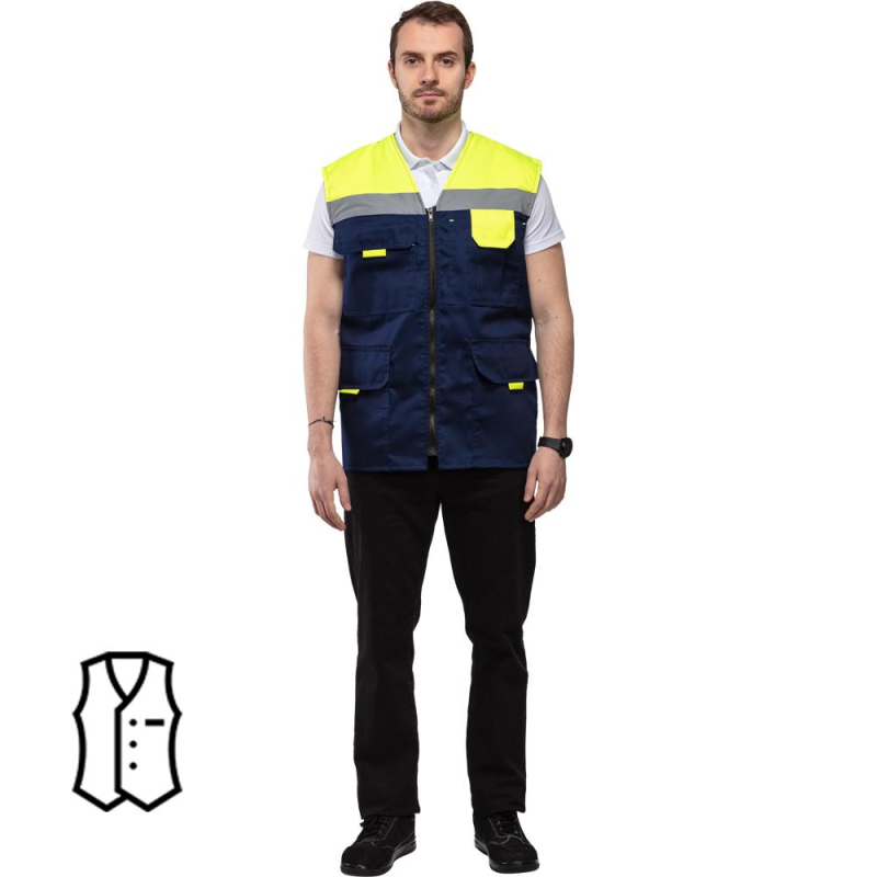 Жилет рабочий л-30-ЖЛ подходит для использования летом. Его размер: 48-50, рассчитан на рост: 170-176. Цвет - синий с лимонными вставками.Для пошива одежды использовалась смесовая ткань, состоящая на 20% из хлопка и на 80% из полиэстера. Ее плотность составляет 210 г/кв.м. Жилет прямого пошива, застегивается на молнию. У него есть несколько удобных карманов. Ширину одежды можно настраивать индивидуально с помощью пат, застегивающихся на пуговицу. На жилете есть светоотражающая полоса.Жилет защищает от воздействия вредных веществ на производстве. Он может использоваться для выполнения работ в сфере логистики, строительства, ЖКХ, автомобильной промышленности.Коллекция летней рабочей одежды л30 представлена полными комбинезонами л30-КБЗ и жилетами л30-ЖЛ.Цвет на изображении товара может отличаться от оригинала из-за особенностей цветопередачи монитора.
