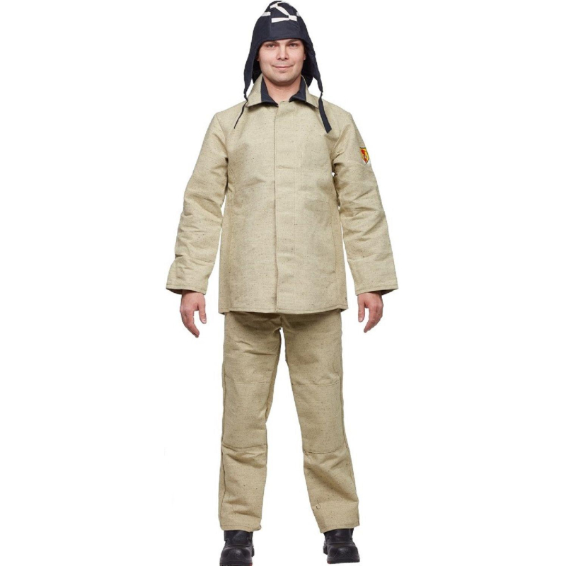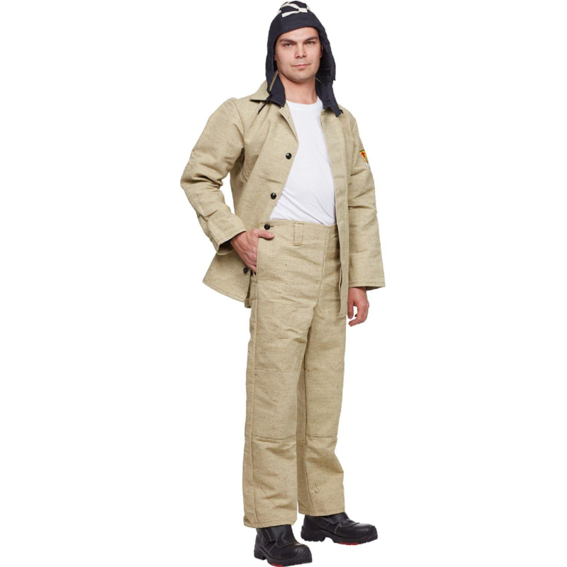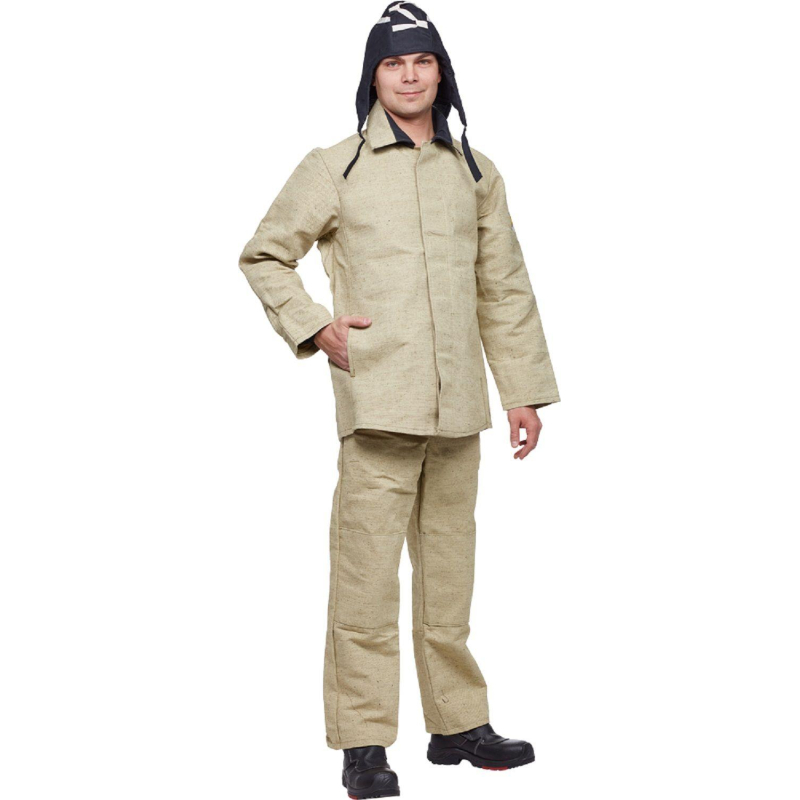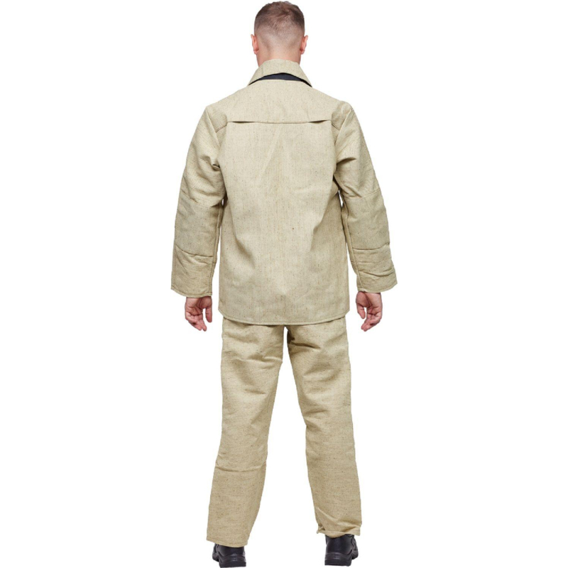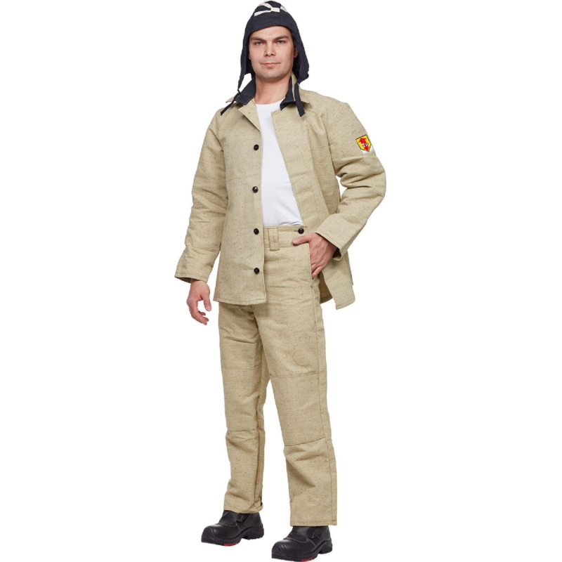 Костюм сварщика брезентовый летний хаки (размер 52-54, рост 182-188). Куртка/брюки (модель КС02) разработан с акцентом на надежную защиту профессионалов-сварщиков. Главными преимуществами костюма являются огнестойкие и термозащитные свойства, которые гарантируют полную безопасность сварщика во время выполнения работ. Костюм подходит для использования в различных условиях: как для работы в полевых условиях, так и для выполнения задач в цехах и на монтажных площадках. Костюм изготовлен из брезента с огнестойкой пропиткой. Плотность ткани составляет не менее 500 гр/м?. Материал надежно защищает сварщика от брызг расплавленного металла и окалины. Материал гипоаллергенен и отличается высокой прочностью на разрыв. Куртка имеет центральную бортовую потайную застежку. Карманы размещены в боковых швах, их удобно использовать для хранения и переноса мелких инструментов и личных вещей. Куртка имеет вентиляционные отверстия по линии соединения кокетки и под рукавами, что способствует хорошей воздухопроницаемости. Полуприлегающий силуэт куртки значительно повышает комфорт во время работы. Манжеты куртки снабжены дополнительными накладками для защиты рук. Напульсники имеют регулируемую застежку на липучке, что обеспечивает надежную фиксацию, не стесняя движений. В куртке предусмотрены 2 боковых кармана, выполненных врезным способом, а также внутренний карман с нашивкой ФИОЛ, защищающий ценные вещи. Застежка на внутреннем кармане - молния. В брюках также находятся два боковых кармана, удобных для хранения инструментов. Воротник куртки отложной. Центральная бортовая застежка на пуговицах дополнительно защищает от ветра и атмосферных воздействий. Брюки оснащены откидывающейся передней частью, которая упрощает процесс их надевания. Сзади расположен притачной пояс. Брюки застегиваются спереди. Спереди находится цельнокроеный пояс. В боковых швах брюк расположены карманы. Силуэт брюк - свободный, что не стесняет движения при выполнении разнообразных задач. Костюм сварщика (модель КС02) соответствует второму классу защиты и предназначен для работы на расстоянии не менее 50 см от источников брызг металла и окалины. Благодаря высоким огнестойким характеристикам, одежда надежно защищает работника от термических повреждений, обеспечивая безопасность во время сварочных работ. Каждый элемент костюма продуман для индивидуальной регулировки по фигуре. У куртки предусмотрены шлевки на поясе, что позволяет адаптировать посадку по талии. Эластичные вставки отсутствуют, но обеспечивается свободность движений благодаря продуманной конструкции. Для ухода за костюмом рекомендуется стирка в холодной воде с использованием мягких моющих средств, избегая использования отбеливателей и агрессивных химикатов. Сушить на воздухе, избегая прямых солнечных лучей, и хранить в сухом месте. Костюм сварщика изготовлен в соответствии с требованиями СТО 03857273-002-2022 и соответствует нормативам ТР ТС 019/2011, что подтверждает его высокое качество и соответствие стандартам безопасности. Цвет на изображении товара может отличаться от оригинала из-за особенностей цветопередачи монитора. ЗАКОНОДАТЕЛЬНЫЕ И ТЕХНИЧЕСКИЕ ДОКУМЕНТЫ: