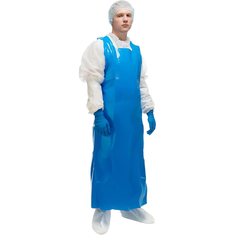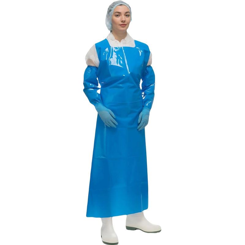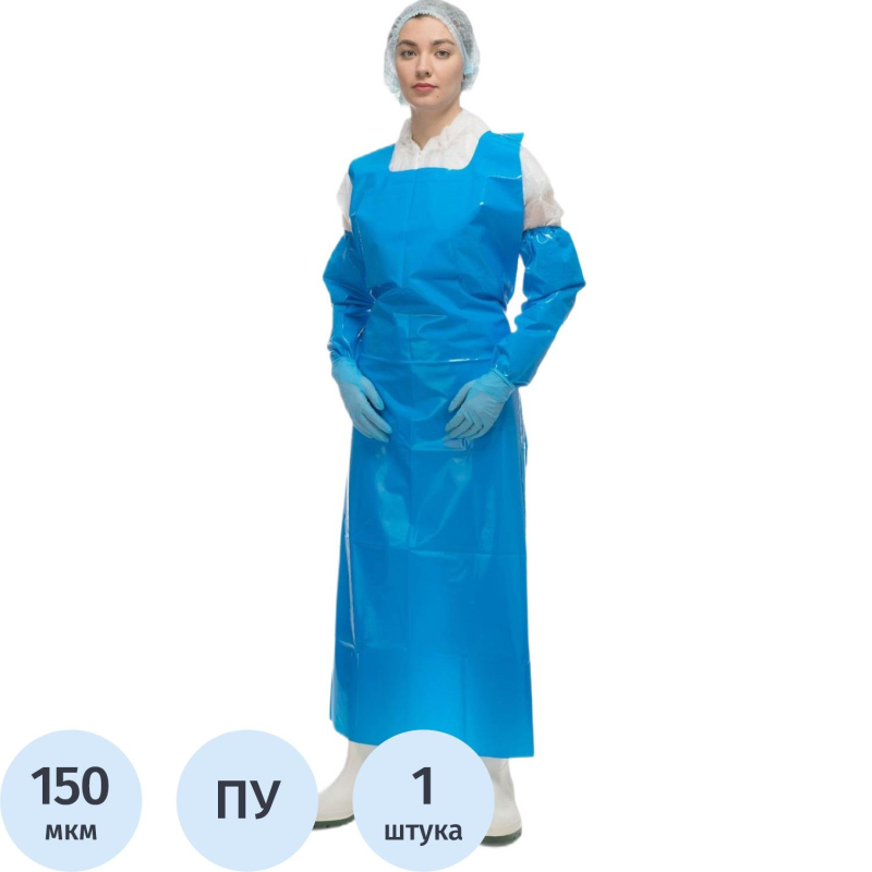 Фартук многоразовый Haccper Uretex Tpu универсальный размер полиуретановый 150 мкм синий в пласте (950100)Фартук изготовлен из цельнокроеного полиуретана без тканевых элементов и фурнитуры. Он рассчитан на многоразовое использование в пищевой промышленности. Материал не впитывает загрязнения и запахи, легко моется и дезинфицируется.Фартук устойчив к жирам, маслам, смазкам, крови, а также к действию моющих и дезинфицирующих растворов. Он сохраняет эластичность даже при температуре -80С, не теряет форму, не вызывает аллергии и не имеет запаха. Полиуретан нетоксичен и безопасен при ежедневном использовании.Размер изделия - 150x83 см, толщина материала - 150 мкм. Фартук прочный и долговечный, выдерживает до 60 машинных стирок, не рвётся, не истирается и устойчив к проколам. Цвет - синий.Фартук соответствует требованиям HACCP и техническому регламенту ТР ТС 019/2011.