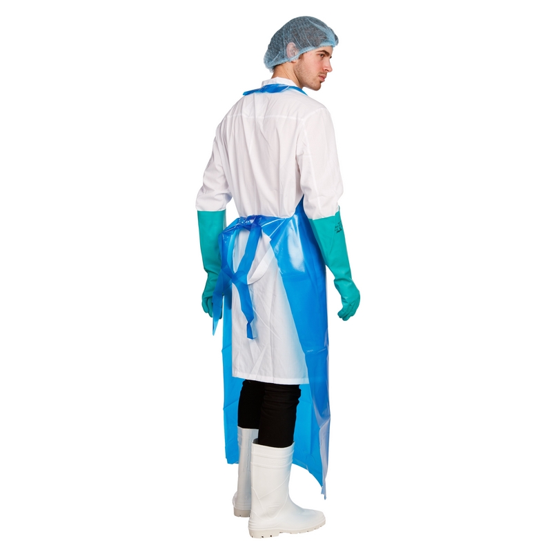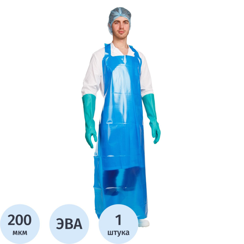 Фартук многоразовый Haccper Evatex Eva универсальный размер ЭВА 200 мкм синий в пласте (730215)Фартук изготовлен из цельнокроеного этиленвинилацетата без тканевых вставок и фурнитуры. Он предназначен для многоразового использования в пищевой промышленности и допущен к прямому контакту с продуктами. Материал не впитывает загрязнения и запахи, легко моется и дезинфицируется.Фартук устойчив к жирам, моющим и дезинфицирующим растворам. Он сохраняет эластичность при температуре до -20С, не вызывает аллергии, не имеет запаха и безопасен для длительного ношения. Небольшой вес и гибкость обеспечивают свободу движений и комфорт в процессе работы.Размер изделия - 150x83 см, толщина - 200 мкм. Фартук рассчитан на 15 циклов машинной стирки и обладает высокой износостойкостью. Цвет - синий.Продукт соответствует требованиям HACCP и ТР ТС 019/2011.