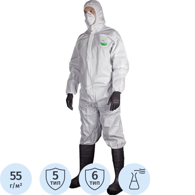 Комбинезон одноразовый с капюшоном Lakeland MicroMAX NS белого цвета - это защита самого щирокого спектра, от сухих и жидких сред - опасная пыль, водные растворы химических веществ, масел, бензина, смол, нефтепродуктов, химических веществ не высокого класса. Не образует ворса, антистатичен. Ткань: спанбонд, микропористая пленка. Плотность 55 г/кв.м. Оптимально подобранные швы и конструктивные особенности комбинезона гарантируют высокую степень защиты. Материал обладает высочайшей степенью инфекционной защиты, отвечает требованиям по защите от радиоактивных частиц. Тип защиты: 5 (EN 13882-1) - защита от опасных сухих веществ, тип 6 (EN 13034) - защита от небольших брызг растворов химических веществ, легких брызг неопасных жидкостей. Элементы комбинезона: манжеты и капюшон на резинке, резинка на поясе, капюшон из трех частей, втачные рукава, ластовица. Область применения: гигиена, пищевая промышденность, химическое производство. Размер 50-54, рост 176-182 (L).
