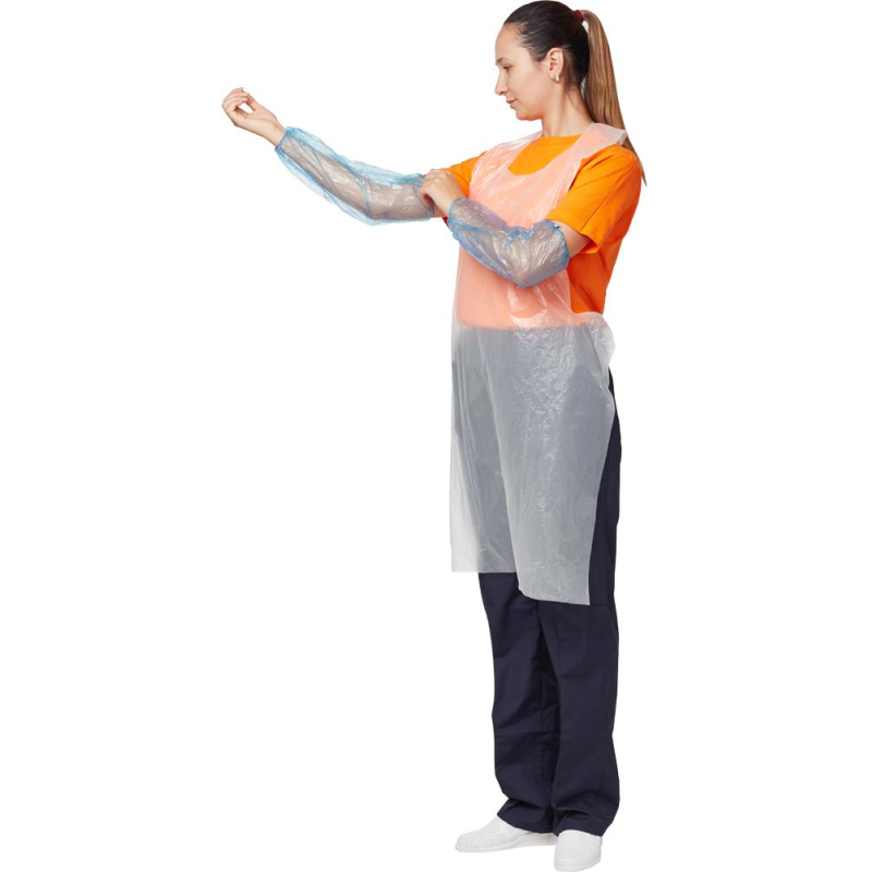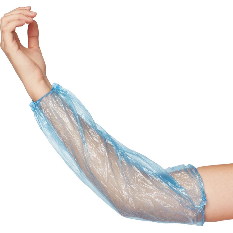 Нарукавники одноразовые полиэтиленовые. Используются для защиты одежды от загрязнений. Рекомендованы для использования в медицинских учреждениях, предприятиях общественного питания (рестораны, столовые, кафе), пищевой промышленности, и прочих отраслях, где требуется дополнительная защита. Нарукавники предназначены для защиты от попадания активных или загрязняющих веществ. Цвет: голубой. Упаковка: 50 пар.