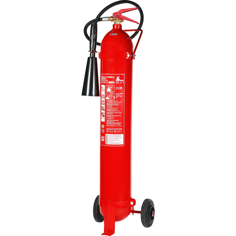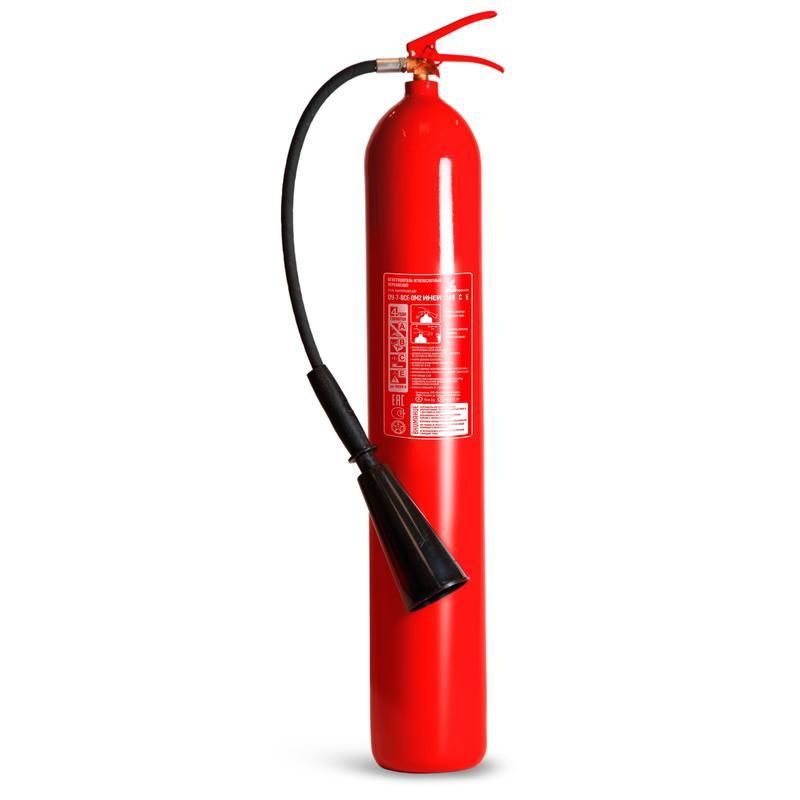 Огнетушитель углекислотный ОУ-7 Иней BCE - самый большой переносной огнетушитель. Наиболее эффективен для защиты имущества, не имеющего риска повреждения от воздействия низкой температуры (перепада температур). Рекомендуется использовать в качестве дополнительного огнетушителя к основному, имеющему ранг 2А - для защиты общественных зданий и помещений категорий Г и Д, или имеющему ранг 4А, - для защиты помещений категорий А, Б, В, при наличии в них электроустановок до 10 000 В. Баллон высокого давления по ГОСТ 949 на рабочее давление 15 МПа (150 атм). Рекомендуется использовать при температуре от -40 до +50 °C. Имеет повышенную огнетушащую способность по сравнению с предусмотренной ГОСТ Р. Заряжен 7 кг двуокиси углерода высшего сорта. Имеет повышенный ранг по классу В по сравнению с обычным ОУ7 (70В против 55В). Поскольку огнетушащим веществом является сухой газ, то при срабатывании огнетушителя не создается продуктов горения, не задымляется помещение, не наносится ущерб защищаемому имуществу, а также не создается препятствий для эвакуации людей, как при применении порошкового огнетушителя. Огнетушитель способен подавать струю огнетушащего состава на расстояние не менее 3-х метров. Огнетушащая способность (ранг огнетушителя): 70В, С, Е (до 10 000 В). Вес огнетушителя: 19.8 кг. Вес огнетушащего вещества: 7 кг. Огнетушащее вещество: двуокись углерода высшего сорта. Время подачи огнетушащего вещества: 10 секунд. Площадь тушения: 2.26 кв.м. Объем баллона: 10 литров. Диаметр баллона: 159 мм. Паспорт баллона нанесен заводским клеймением по ТР ЕАЭС 032/2013. Гарантийный срок: 48 месяцев. Срок службы огнетушителя: 15 лет. Производитель: 'Пожтехника' Беларусь. Аксессуары: - подставка напольная Престиж арт.366664, 366665, 391384. Комплектация: распылитель, раструб, паспорт, тележка. Соответствует стандарту ГОСТ Р51057-2001. Перезарядка осуществляется через 5 лет с даты производства огнетушителя.