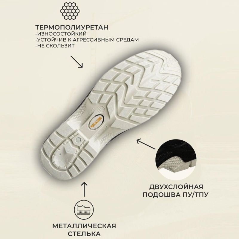 Ботинки модели Мистраль Ultra подходят как для мужчин, так и для женщин. Выполнены в черном цвете. Размер 37. Обувь рекомендована к использованию в строительстве, озеленении территории, ЖКХ, промышленности, логистике, нефтегазовой промышленности. Рабочая обувь из натуральной кожи долговечна, устойчива к повреждениям, комфортна в носке. Фиксируется обувь на ноге с помощью шнурков, которые плотно обхватывают стопу, улучшая комфорт ношения. В качестве подкладки используется современный подкладочный материал "Типика" на нетканой основе. Сетчатый материал эффективно отводит влагу от стопы, а также обеспечивает гигиеничность. Композитный (поликарбонатный) подносок, который выдерживает силу удара до 200 Дж, снижает количество травм на производстве, защищая стопу от травм. Подошва двухслойная из полиуретана с термополиуретаном (ПУ+ТПУ): маслобензостойкая, кислотощелочестойкая. Подошва обладает прекрасным сопротивлением к скольжению, устойчива к воздействию температур от 35 до 130 °C. Промежуточный слой из полиуретана придает подошве легкость, а ходовой слой из термополиуретана увеличивает срок службы за счет устойчивости к многократному изгибу, деформации и истиранию. Подошва обуви скреплена литьевым методом. Данный метод обеспечивает надежное, герметичное крепление слоев подошвы, а значит, долгий срок службы и высокую гибкость, тем самым уменьшая усталость ног. Антипрокольная стелька из металла, так же, как и подносок, снижает количество травм на производстве, защищая стопу от травм. Защитные свойства обуви: Мун 200 (защита от ударов в носочной части энергией 200 Дж), З (защита от общих производственных загрязнений). Гарантийный срок после выдачи обуви составляет 70 дней при соблюдении правил ухода, эксплутации и хранения. Соответствуют стандартам ТР ТС 019/2011. Цвет на изображении товара в интернет-магазине или в печатном каталоге может отличаться от оригинала из-за особенностей цветопередачи монитора.