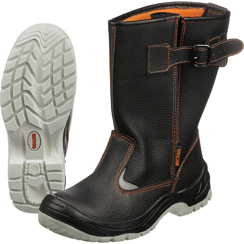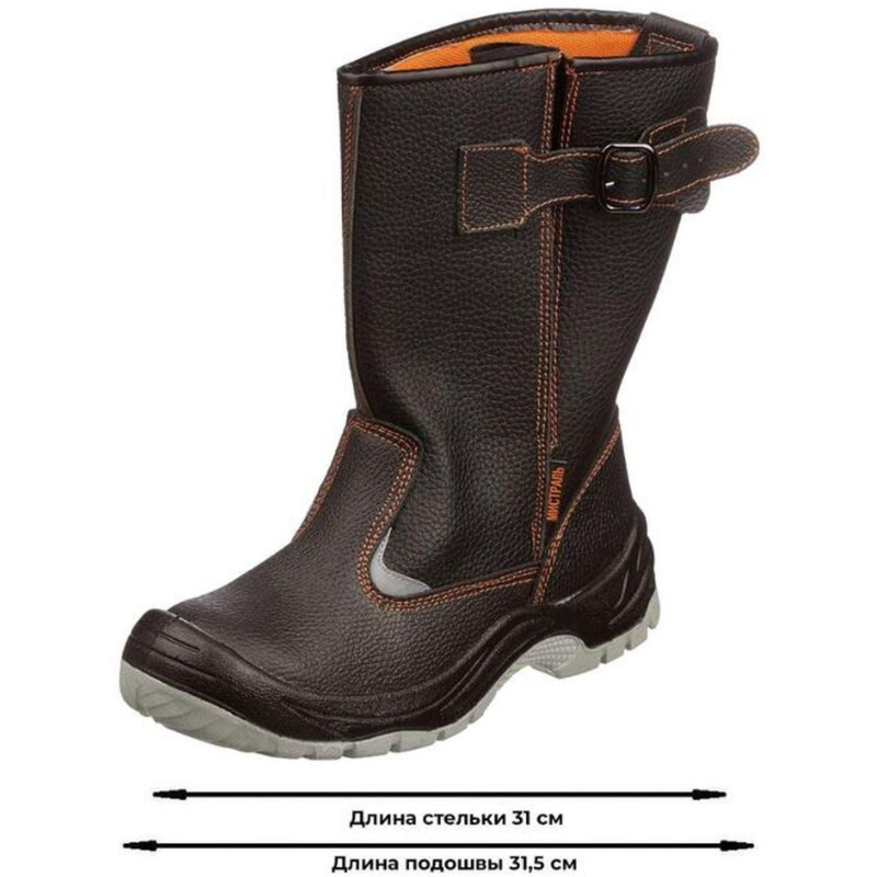Сапоги рабочие модели Мистраль подойдут как для мужчин, так и для женщин. Выполнены в черном цвете. Размер 47. Обувь рекомендована к использованию в строительстве, озеленении территории, ЖКХ, промышленности, логистике, нефтегазовой промышленности. Рабочая обувь из натуральной кожи долговечна, устойчива к повреждениям, комфортна в носке. В качестве подкладки используется современный подкладочный материал "Типика" на нетканой основе. Сетчатый материал эффективно отводит влагу от стопы, а также обеспечивает гигиеничность. Противоударный металлический подносок защищает от ударов силой до 200 Дж. Полиуретановая с термополиуретаном подошва (ПУ+ТПУ) устойчива к воздействию химических факторов (нефть, масла, щелочь и кислота). Обувь с данной подошвой выдерживает температурные режимы от -30 до 130 °C. Подошва обуви выполнена из промежуточного полиуретанового слоя, который придает легкость, и ходового слоя из термополиуретана, устойчивого к деформациям, истираниям. Метод крепления подошвы: литьевой. Обеспечивает надежное скрепление верхней части обуви и подошвы, тем самым обеспечивая герметичность обуви. Металлическая стелька. Защитные свойства обуви: Мун 200 (защита от ударов в носочной части энергией 200 Дж), З (защита от общих производственных загрязнений). Гарантийный срок после выдачи обуви составляет 70 дней при соблюдении правил ухода, эксплутации и хранения. Соответвтуют стандартам ТР ТС 019/2011, ГОСТ 12.4.033-77, ГОСТ 12.4.137-2001, ГОСТ 12.4.177-89, ГОСТ 28507-99, ГОСТ Р 12.4.187-97. Цвет на изображении товара в интернет-магазине или в печатном каталоге может отличаться от оригинала из-за особенностей цветопередачи монитора.