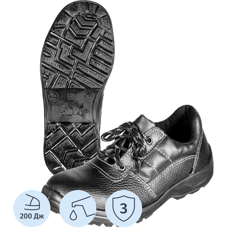 Полуботинки модели Профи подходят и для мужчин, и для женщин. Выполнены в черном цвете. Размер 40. Рекомендуются для различных отраслей промышленности, таких как: нефтегазовый комплекс, сельское хозяйство, строительная отрасль, металлургия и химическая промышленность, для работы на открытом воздухе и в производственных помещениях. Верх обуви выполнен из натуральной кожи толщиной 2,0-2,2 мм. Широкая колодка и мягкий кант обеспечивают комфорт при носке обуви. Металлический подносок. Подошва из однослойного полиуретана, литьевого метода крепления. Стандартная полнота стельки. Сама стелька из нетканного материала. Обувь должна быть выдана в эксплуатацию по назначению, размеру и полноте. После окончания работы обувь должна быть очищена от загрязнений без повреждения материала верха и низа, протерта и оставлена в вентилируемом помещении в раскрытом и расправленном виде для проветривания на расстоянии не менее 0.5 м от обогревательных приборов. Не допускается чистить обувь органическими растворителями. Обувь должна систематически, один раз в неделю смазываться обувным кремом, изготовленным по НД. Допустимое время непрерывного пользования не более 9 ч. Гарантийный срок носки обуви составляет 70 дней с даты выдачи ее в эксплуатацию. Предназначены для защиты от общих производственных загрязнений, от механических повреждений. Соответствуют стандартам ГОСТ 12.4.137-2001, ГОСТ 28507-99, ТР ТС 019/2011. Цвет на изображении товара в интернет-магазине или в печатном каталоге может отличаться от оригинала из-за особенностей цветопередачи монитора. ЗАКОНОДАТЕЛЬНЫЕ И ТЕХНИЧЕСКИЕ ДОКУМЕНТЫ: