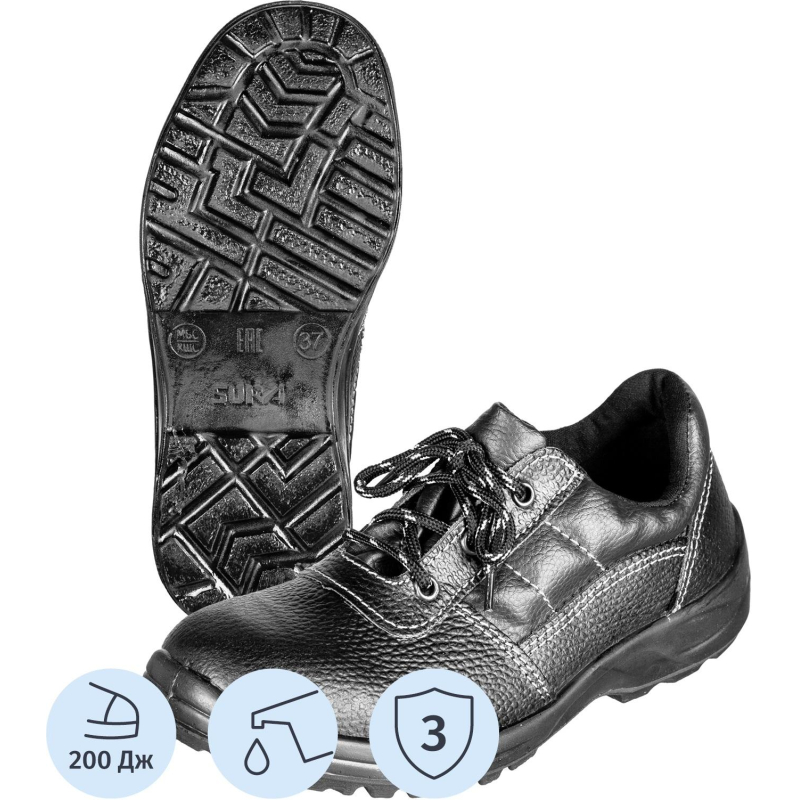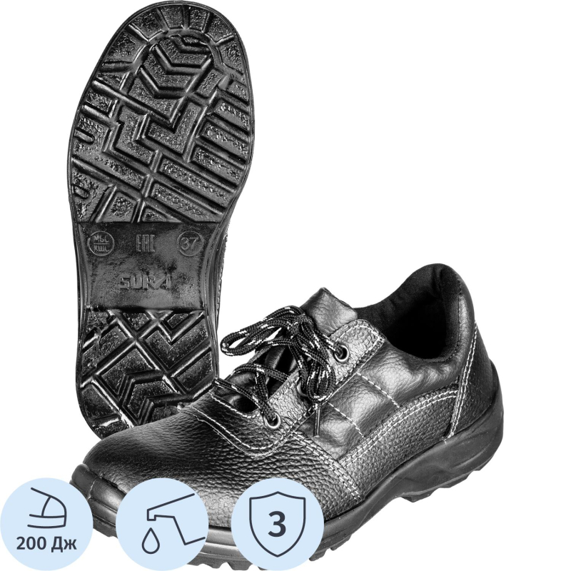 Полуботинки модели Профи подходят и для мужчин, и для женщин. Выполнены в черном цвете. Размер 46. Рекомендуются для различных отраслей промышленности, таких как: нефтегазовый комплекс, сельское хозяйство, строительная отрасль, металлургия и химическая промышленность, для работы на открытом воздухе и в производственных помещениях. Верх обуви выполнен из натуральной кожи толщиной 2,0-2,2 мм. Широкая колодка и мягкий кант обеспечивают комфорт при носке обуви. Металлический подносок. Подошва из однослойного полиуретана, литьевого метода крепления. Стандартная полнота стельки. Сама стелька из нетканного материала. Обувь должна быть выдана в эксплуатацию по назначению, размеру и полноте. После окончания работы обувь должна быть очищена от загрязнений без повреждения материала верха и низа, протерта и оставлена в вентилируемом помещении в раскрытом и расправленном виде для проветривания на расстоянии не менее 0.5 м от обогревательных приборов. Не допускается чистить обувь органическими растворителями. Обувь должна систематически, один раз в неделю смазываться обувным кремом, изготовленным по НД. Допустимое время непрерывного пользования не более 9 ч. Гарантийный срок носки обуви составляет 70 дней с даты выдачи ее в эксплуатацию. Предназначены для защиты от общих производственных загрязнений, от механических повреждений. Соответствуют стандартам ГОСТ 12.4.137-2001, ГОСТ 28507-99, ТР ТС 019/2011. Цвет на изображении товара в интернет-магазине или в печатном каталоге может отличаться от оригинала из-за особенностей цветопередачи монитора. ЗАКОНОДАТЕЛЬНЫЕ И ТЕХНИЧЕСКИЕ ДОКУМЕНТЫ: