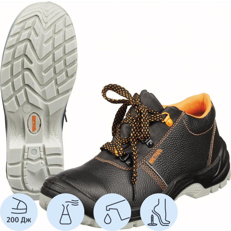 Рабочие полуботинки летние модели Мистраль подойдут как для мужчин, так и для женщин. Выполнены в черном цвете. Размер 36. Полуботинки подойдут для использования в нефтегазовой промышленности, тяжелой промышленности, логистике. А также в сфере строительства, озеленения территории/ЖКХ. Верх модели из плотной комбинированной кожи. Комбинированная кожа - долговечный материал, обладает воздухопроницаемыми свойствами, не дает ногам потеть. Эргономичная форма подошвы снижает усталость ног, амортизирующие свойства промежуточного полиуретанового слоя подошвы гасят ударные нагрузки, придают обуви легкость и комфортность. Универсальная застежка с помощью шнурков позволяет плотно зафиксировать ботинки на ноге даже с высоким подъемом. Металлический подносок, который защищает носочную часть от ударов силой до 200 Дж - снижает количество травм на производстве. Полиуретановая с термополиуретаном подошва (ПУ+ТПУ) устойчива к воздействию агрессивной среды - масел, нефтепродуктов, щелочей и кислот. Ходовой слой из износостойкого термопластичного полиуретана с улучшенным сопротивлением скольжению, устойчив к деформациям и стиранию. Яркая трикотажная подкладка также обеспечивает комфорт и гигиеничность. Вставки из светоотражающего материала делают ноги более заметными. Металлическая антипрокольная стелька, так же, как и подносок защищает стопу, снижает количество травм на производстве. Литьевой метод крепления подошвы является самым надежным методом скрепления верхней части и подошвы ботинок, таким образом, обеспечивается герметичность обуви. Глухой клапан исключает попадание влаги, пыли и мелких предметов. Гарантийный срок после выдачи обуви составляет 70 дней при соблюдении правил ухода, эксплутации и хранения. Данная модель маслобензиностойкая, предназначена для защиты от от общих производственных загрязнений, от кислот и щелочей, от ударов, от скольжения. Соответствуют стандартам ГОСТ 12.4.033-77, ГОСТ 12.4.137-2001, ГОСТ 12.4.177-89, ГОСТ 28507-99, ГОСТ Р 12.4.187-97, ТР ТС 019/2011. Цвет на изображении товара в интернет-магазине или в печатном каталоге может отличаться от оригинала из-за особенностей цветопередачи монитора.