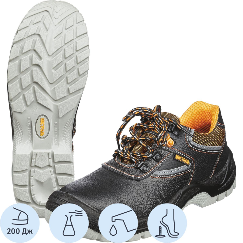 Полуботинки летние Мистраль модель Ultra подойдет как для мужчин, так и для женщин. Выполнены в черном цвете. Размер 43. Пдойдут для использования в нефтегазовой промышленности, тяжелой промышленности, логистике. А также в сфере строительства, озеленения территории/ЖКХ. Верх материала из натуральной кожи. Натуральная кожа обладает воздухопроницаемыми свойствами, не дает ногам потеть.Фиксируется обувь на ноге с помощью шнурков, которые плотно обхватывают стопу, улучшая комфорт ношения. В качестве подкладки используется современный подкладочный материал "Типика" на нетканой основе. Сетчатый материал эффективно отводит влагу от стопы, а также обеспечивает гигиеничность. Композитный (поликарбонатный) подносок, который защищает от удара силой до 200 Дж, что снижает количество травм на производстве. Полиуретановая с термополиуретаном подошва (ПУ+ТПУ) устойчива к воздействию химических факторов (нефть, масла, щелочь и кислота). Подошва обладает прекрасным сопротивлением к скольжению, устойчива к воздействию температур от -35 до 130 °C. Промежуточный слой из полиуретана придает подошве легкость, а ходовой слой из термополиуретана увеличивает срок службы за счет устойчивости к многократному изгибу, деформации и истиранию. Подошва обуви скреплена литьевым методом. Данный метод обеспечивает надежное, герметичное крепление слоев подошвы, а значит долгий срок службы и высокую гибкость, тем самым уменьшая усталость ног. Эргономичная форма подошвы снижает усталость ног. Антипрокольная стелька из металла защищает стопу и снижают количество травм на производстве. Гарантийный срок после выдачи обуви составляет 70 дней при соблюдении правил ухода, эксплутации и хранения. Данная модель маслобензиностойкая, предназначена для защиты от общих производственных загрязнений, от кислот и щелоче, от ударов, от проколов, от скольжения. Соответсвуют стандартам ГОСТ 12.4.033-77, ГОСТ 12.4.137-2001, ГОСТ 12.4.177-89, ГОСТ 28507-99, ГОСТ Р 12.4.187-97, ТР ТС 019/2011. Цвет на изображении товара в интернет-магазине или в печатном каталоге может отличаться от оригинала из-за особенностей цветопередачи монитора.
