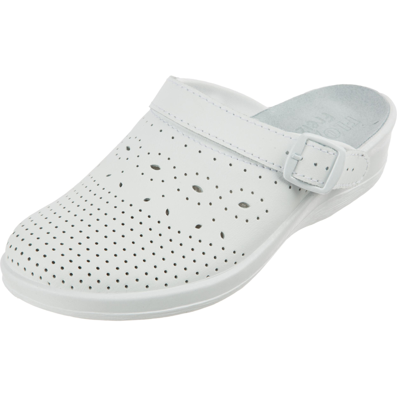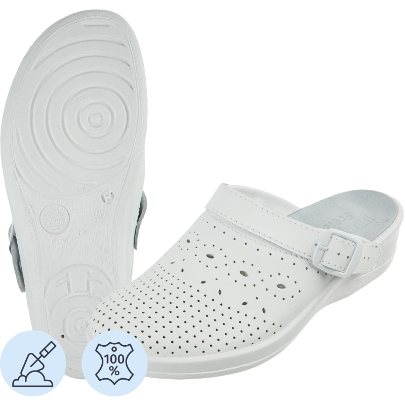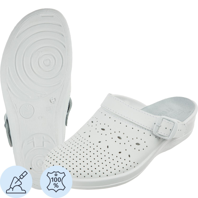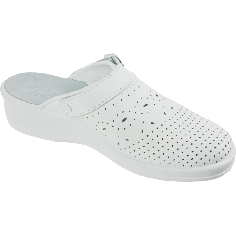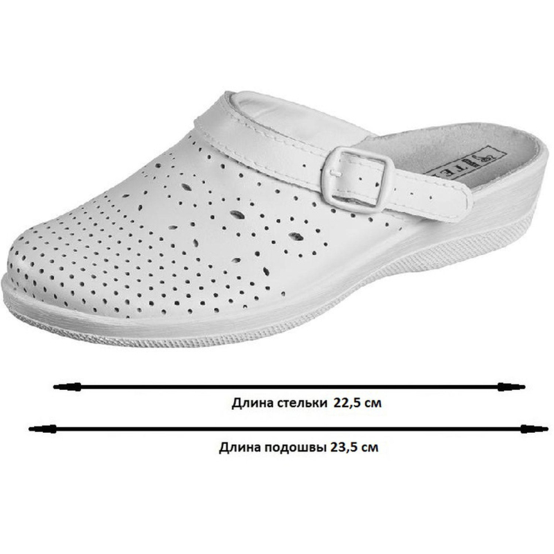 Туфли сабо модели Яна являются удобной женской обувью и используются в медицинских учреждениях, в легкой промышленности и как повседневная обувь. Выполнена модель в белом цвете. Размер 37. Изготавливаются из натурального спилка (кожа) толщиной 1,8. Поворотный регулируемый ремешок может располагаться впереди, для декорации, и сзади, для фиксации пятки. Подошва на танкетке литьевого метода крепления с четким нескользящим протектором на облегченном ПВХ. Срок эксплуатации 90 дней, срок хранения 36 месяца при соблюдении условий эксплуатации, хранения и транспортировки. При длительном воздействии пониженных температур от -20 °C материал, из которого изготовлена обувь, теряет свои свойства и становится хрупким. Предназначены для защиты от общих загрязнений. Соответствуют стандартам ТР ТС 017/2011. Цвет на изображении товара в интернет-магазине или в печатном каталоге может отличаться от оригинала из-за особенностей цветопередачи монитора.