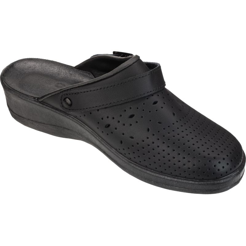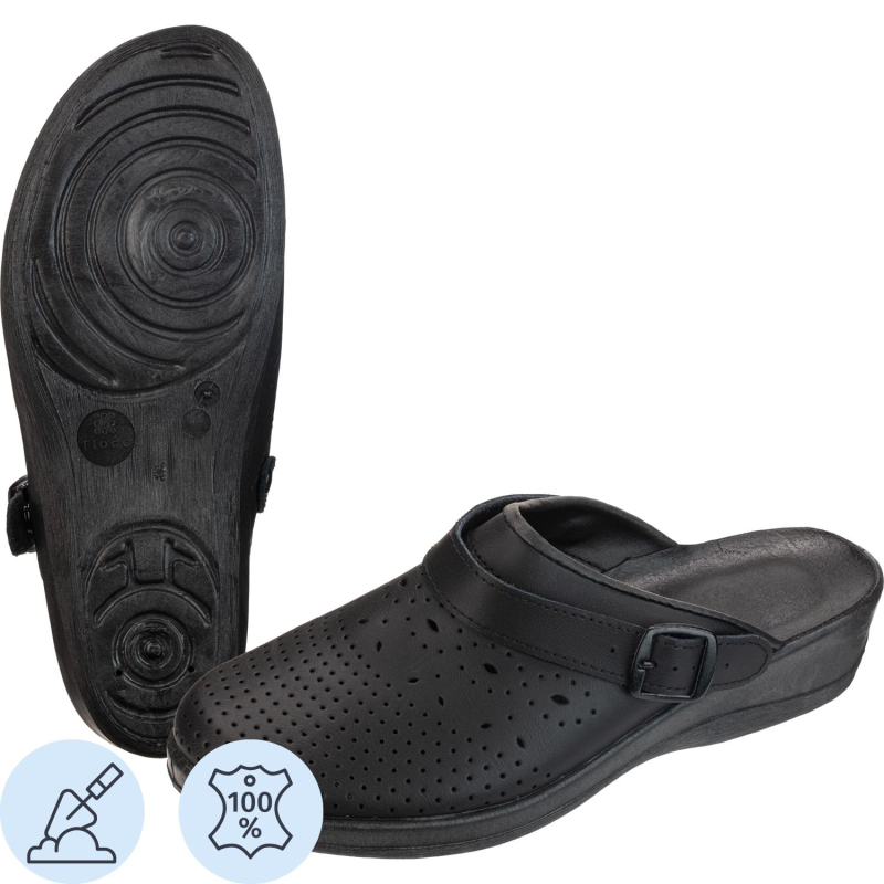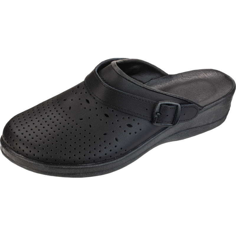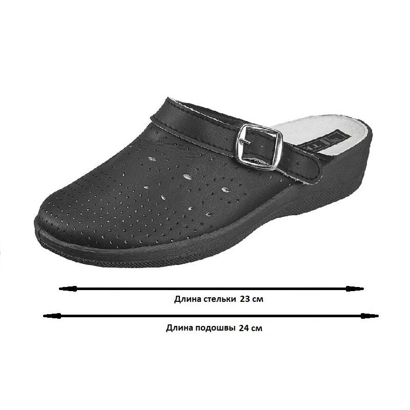 Туфли сабо модели Яна являются удобной женской обувью и используются в медицинских учреждениях, в легкой промышленности и как повседневная обувь. Выполнена модель в черном цвете. Размер 38. Изготавливаются из натурального спилка (кожа) толщиной 1,8. Поворотный регулируемый ремешок может располагаться впереди, для декорации, и сзади, для фиксации пятки. Подошва на танкетке литьевого метода крепления с четким нескользящим протектором на облегченном ПВХ. Срок эксплуатации 90 дней, срок хранения 36 месяца при соблюдении условий эксплуатации, хранения и транспортировки. При длительном воздействии пониженных температур от -20 °C материал, из которого изготовлена обувь, теряет свои свойства и становится хрупким. Предназначены для защиты от общих загрязнений. Соответствуют стандартам ТР ТС 017/2011. Цвет на изображении товара в интернет-магазине или в печатном каталоге может отличаться от оригинала из-за особенностей цветопередачи монитора.
