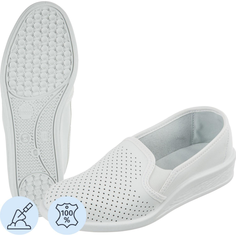 Туфли сабо модели Таня являются удобной женской обувью и используются в медицинских учреждениях, в легкой промышленности и как повседневная обувь. Выполнена модель в белом цвете. Размер 35. Изготавливаются из натуральной кожи. Подошва на танкетке литьевого метода крепления, с четким нескользящим протектором на облегченном ПВХ. Срок эксплуатации 90 дней, срок хранения 36 месяца при соблюдении условий эксплуатации, хранения и транспортировки. При длительном воздействии пониженных температур от -20 °C материал, из которого изготовлена обувь, теряет свои свойства и становится хрупким. Предназначены для защиты от общих загрязнений. Соответствуют стандартам ТР ТС 017/2011. Цвет на изображении товара в интернет-магазине или в печатном каталоге может отличаться от оригинала из-за особенностей цветопередачи монитора.