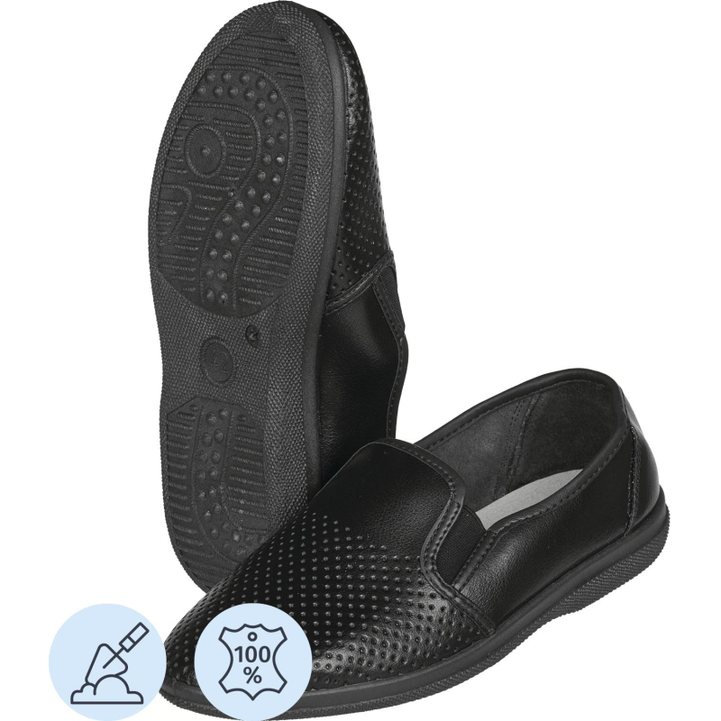Туфли сабо модели Алекс/Игорь являются удобной мужской обувью и используются в медицинских учреждениях, в легкой промышленности и как повседневная обувь. Выполнена модель в черном цвете. Размер 46. Изготавливаются из натуральной кожи. Подошва литьевого метода крепления с четким нескользящим протектором на облегченном ПВХ. Срок эксплуатации 90 дней, срок хранения 36 месяца при соблюдении условий эксплуатации, хранения и транспортировки. При длительном воздействии пониженных температур от -20 °C материал, из которого изготовлена обувь, теряет свои свойства и становится хрупким. Предназначены для защиты от общих загрязнений. Соответствуют стандартам ТР ТС 017/2011. Цвет на изображении товара в интернет-магазине или в печатном каталоге может отличаться от оригинала из-за особенностей цветопередачи монитора.