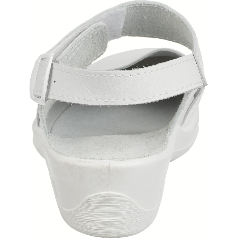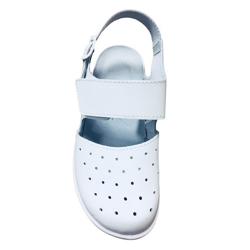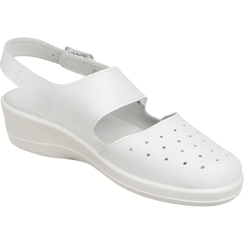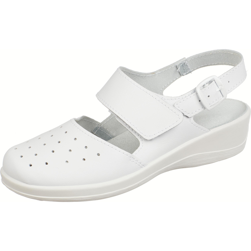 Туфли сабо модели Бэлла являются удобной женской обувью и используются в медицинских учреждениях, в легкой промышленности и как повседневная обувь. Выполнены в белом цвете. Размер 36. Изготавливаются из натуральной кожи. Регулируемый ремешок сзади для фиксации пятки, передний ремешок на липучке позволяет регулировать подъем ноги. Союзка выполнена с перфорацией для вентиляции ноги. Подошва на танкетке литьевого метода крепления, с четким нескользящим протектором, на облегченном ПВХ, выдерживающий температурный режим при литье от 160 до 180 °C. В коллекции сабо Бэлла представлены модели в различных цветовых сочетаниях: белый с розовой отделкой, белый с голубой и зеленой отделками, полностью белые. Срок эксплуатации 90 дней, срок хранения 36 месяца при соблюдении условий эксплуатации, хранения и транспортировки. При длительном воздействии пониженных температур от -20 °C материал, из которого изготовлена обувь, теряет свои свойства и становится хрупким. ПРедназначены для защиты от общих загрязнений. Соответствуют стандартам ТР ТС 017/2011. Цвет на изображении товара в интернет-магазине или в печатном каталоге может отличаться от оригинала из-за особенностей цветопередачи монитора.