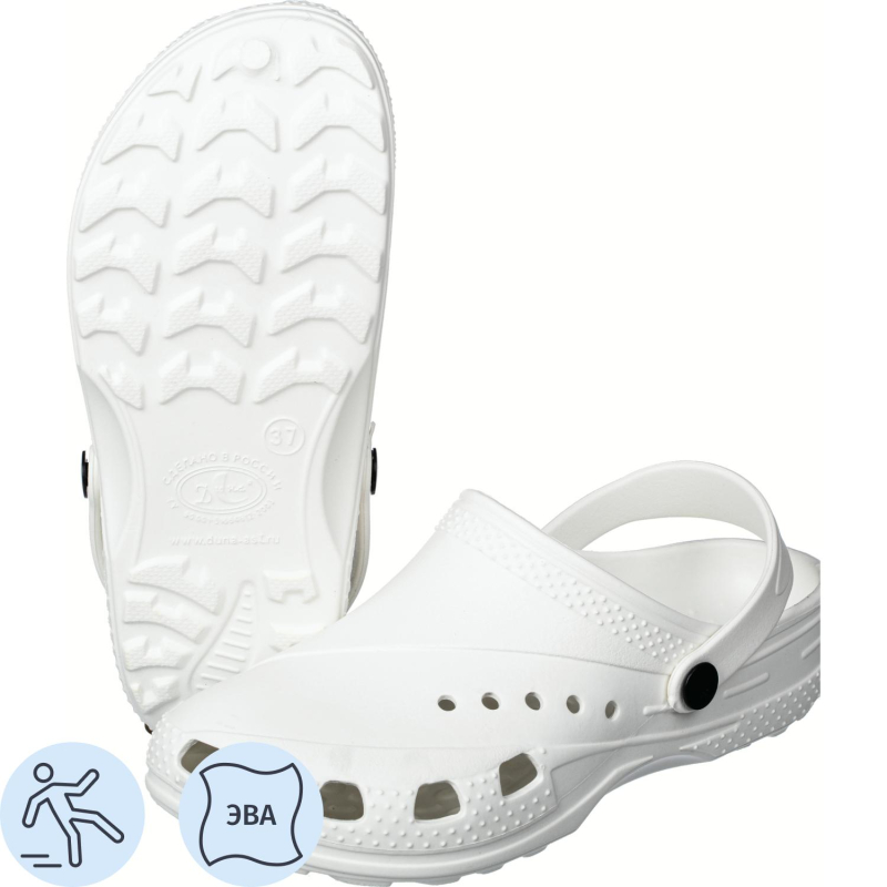 Сабо мужские модел 601/02М в белом цвете. Размер 46. Обувь рекомендована к использованию в медицинских учреждениях, учреждениях общественного питания и в пищевом производстве. Модель изготовлена полностью из материала ЭВА. Материал экологически чистый. Полимерный материал не впитывает влагу, за счет чего гигиеничен, легко ухаживать (можно мыть в мыльной воде). Имеет очень малый вес и высокую амортизацию материала, что снижает усталость ног работника. Подошва сабо обеспечивает надежную поддержку стопы. Метод изготовления - литьевой. Литьевой метод крепления подошвы является самым надежным методом скрепления верхней части и подошвы ботинок, таким образом, обеспечивается герметичность обуви. Внутренняя поверхность подошвы имеет анатомическую форму, благодаря этому увеличивается комфорт ношения. Благодаря материалу ЭВА - DU-Care, сабо износоустойчивы, обладают упругостью и эластичностью, легкостью. Модель оснащена удобным поворотным ремешком, который надежно фиксирует ногу и не создает неудобств при ходьбе. Сабо очень эргономичны, что позволяет легко снимають и надевать их. Модель имеет вентиляционные отверстия вокруг носка, что позволяет ногам дышать. Гарантийный срок эксплуатации составляет 45 дней при условии соблюдения правил ухода, эксплуатации и хранения. Данная модель маслобензиностойкая, предназначена для защиты от кислот и щелочей, от скольжения, а так же от общепроизводственных загрязнений. Соответствуют стандартам ГОСТ 26167-2005, ТР ТС 019/2011. Цвет на изображении товара в интернет-магазине или в печатном каталоге может отличаться от оригинала из-за особенностей цветопередачи монитора.