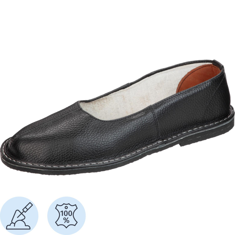 Тапочки рабочие чувяки модели Чувяки-Ч подойдут как для мужчин, так и для женщин. Выполнены в черном цвете. Размер 37. Предназначены для использования в закрытых помещениях, для работников текстильной промышленности. Могут использоваться и в других областях легкой промышленности. Верх обуви из натуральной кожи. Подошва - резина. Метод крепления подошвы - клеепрошивной. Не пригодна для условий с пониженными температурами. Температурный диапазон от +35 до 0 градусов по Цельсию. Гарантийный срок эксплуатации 6 месяцев при условии применения по назначению и соблюдения правил эксплуатации, ухода и хранения. Эксплуатация обуви возможна в соответствии с сезонным назначением и в помещении. Предназначены для защиты от общих производственных загрязнений. Соответствуют стандартам ГОСТ 26167-2005, ТР ТС 017/2011. Цвет на изображении товара в интернет-магазине или в печатном каталоге может отличаться от оригинала из-за особенностей цветопередачи монитора.