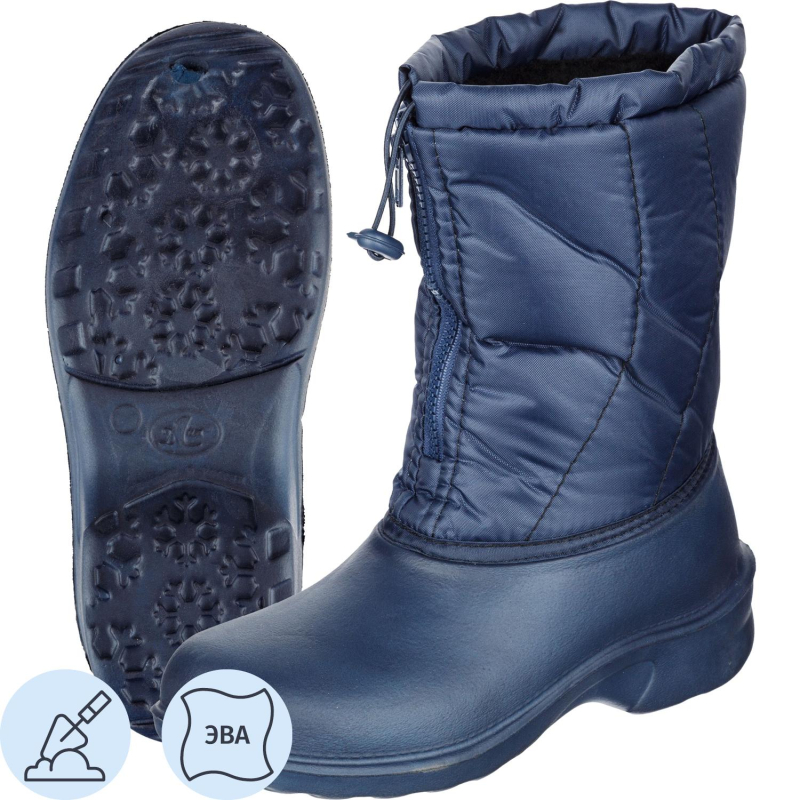 Боты женские модели Эва 321 боты на основе галоши из ЭВА выполнены в синем цвете. Размер 37. Материал верха из водоотталкивающей ткани, сдублированная поролоном с утеплителем из нетканного полотна с ворсом из качественного сырья. Застежка на молнии. Подошва: ЭВА (легкая, упругая, морозостойкая до -40 градусов). Цельнолитой метод крепления. Высота: 29 см. Подкладка для просушивания не вынимается. Обувь имеет нестандартную колодку и утеплитель, рекомендуется приобретать обувь на размер больше. Гарантийный срок эксплуатации составляет 45 дней при условии соблюдения правил ухода, эксплуатации и хранения. Данная модель предназначена для защиты от общих производственных загрязнений. Соответствуют стандартам ГОСТ 26167-2005, ТР ТС 017/2011. Цвет на изображении товара в интернет-магазине или в печатном каталоге может отличаться от оригинала из-за особенностей цветопередачи монитора.