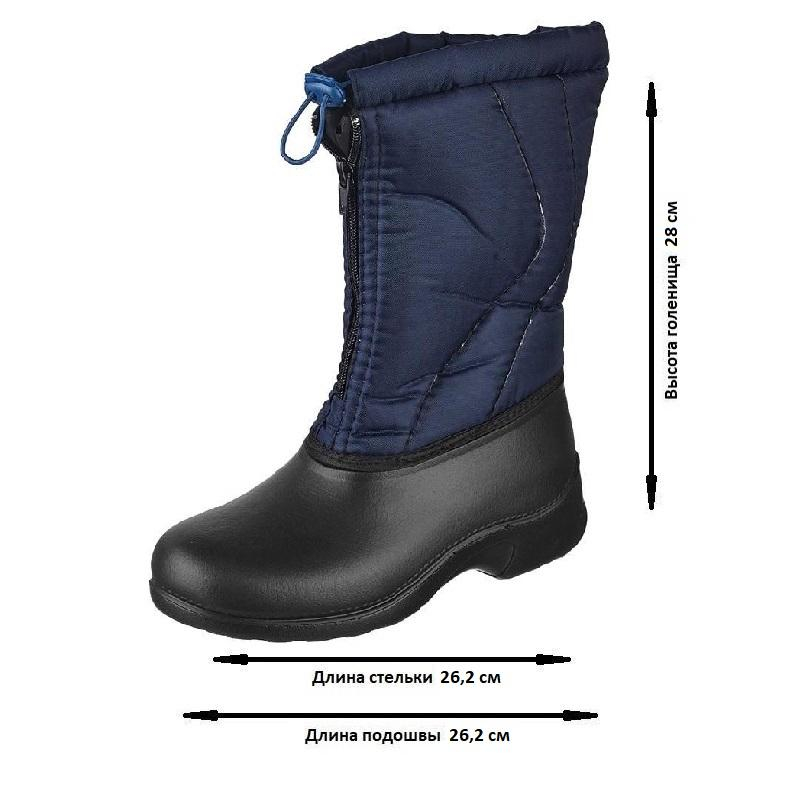 Боты женские модели Эва 321 боты на основе галоши из ЭВА выполнены в синем цвете. Размер 41. Материал верха из водоотталкивающей ткани, сдублированная поролоном с утеплителем из нетканного полотна с ворсом из качественного сырья. Застежка на молнии. Подошва: ЭВА (легкая, упругая, морозостойкая до -40 градусов). Цельнолитой метод крепления. Высота: 29 см. Подкладка для просушивания не вынимается. Обувь имеет нестандартную колодку и утеплитель, рекомендуется приобретать обувь на размер больше. Гарантийный срок эксплуатации составляет 45 дней при условии соблюдения правил ухода, эксплуатации и хранения. Данная модель предназначена для защиты от общих производственных загрязнений. Соответствуют стандартам ГОСТ 26167-2005, ТР ТС 017/2011. Цвет на изображении товара в интернет-магазине или в печатном каталоге может отличаться от оригинала из-за особенностей цветопередачи монитора.