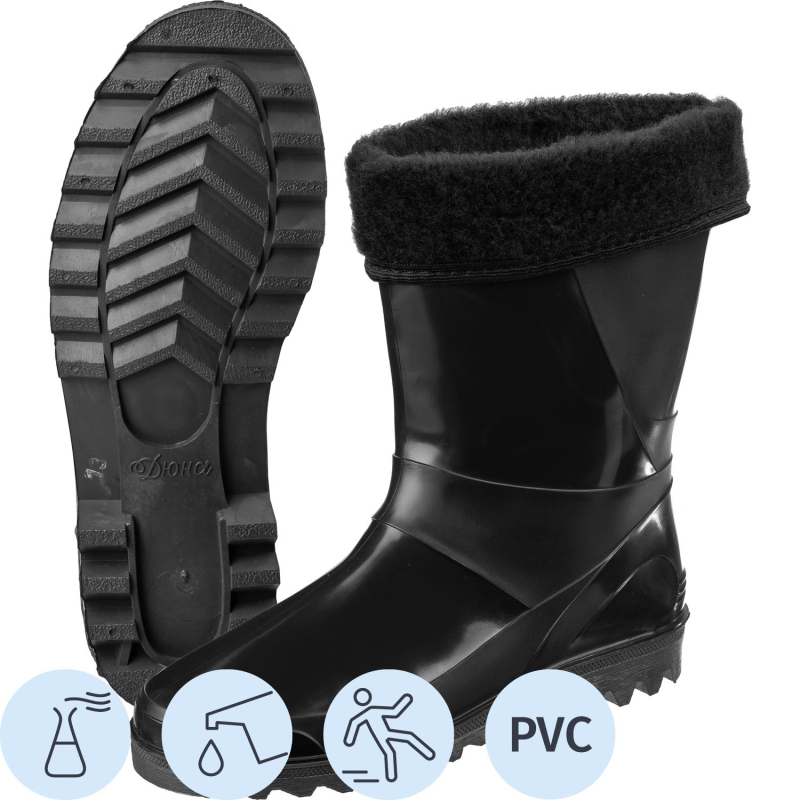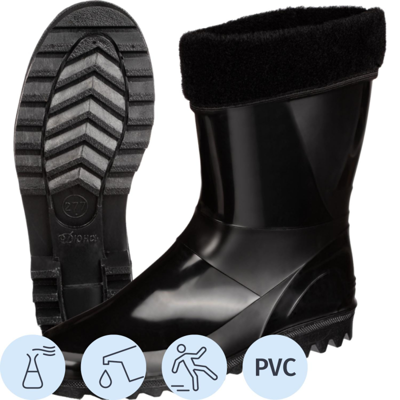 Сапоги рабочие мужские модели 140 У выполнены в черном цвете. Размер 42. Удобные сапоги из ПВХ. Модель комплектуется чулком-утеплителем. Имеют термопластичный подносок. Утеплитель - искусственный мех. Плотная двухслойная подошва так же, как и верх, из ПВХ. Цельнолитой метод крепления подошвы к верху обуви. Высота голенища: 25.9 см. Длина стельки: 27 см. Предназначены для защиты ног от влаги и общепроизводственных загрязнений. Соответствуют стандартам ТР ТС 019/2011. Цвет на изображении товара в интернет-магазине или в печатном каталоге может отличаться от оригинала из-за особенностей цветопередачи монитора.