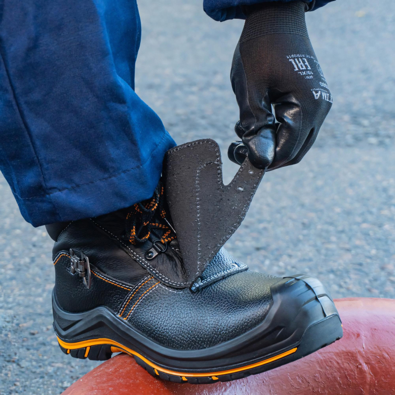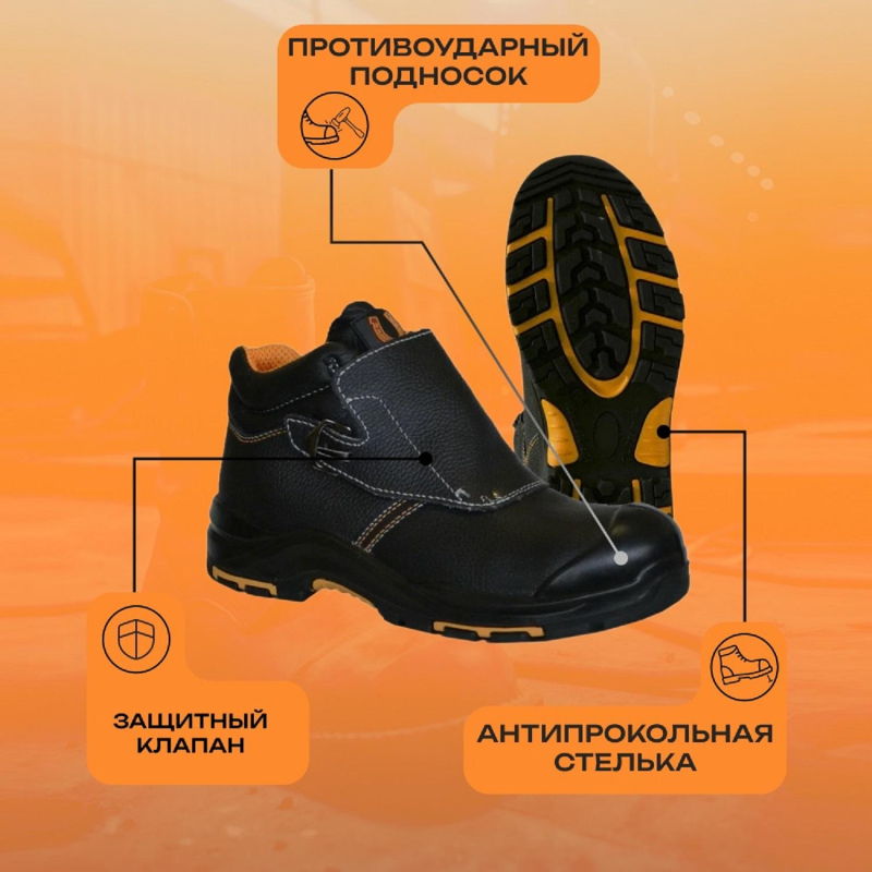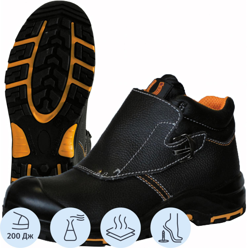 Ботинки сварщика модели Perfect Protection мужские. Выполнены в черном цвете. Размер 37. Обувь рекомендована к использованию в строительстве, озеленении территории, ЖКХ, промышленности, логистике, нефтегазовой промышленности. Рабочая обувь из натуральной кожи долговечна, устойчива к повреждениям, комфортна в носке. Натуральная кожа обладает воздухопроницаемыми свойствами, не дает ногам потеть. Фиксируется обувь на ноге с помощью шнурков, которые плотно обхватывают стопу, улучшая комфорт ношения. Шнуровка защищена от повреждения особой конструкцией наружного клапана. Наружный кожаный клапан предохраняет от общих производственных загрязнений и механических повреждений. Обувь выдерживает температурные режимы от -40 до 300 °C (в течение 60 секунд). Противоударный композитный (поликарбонатный) подносок защищает от ударов силой 200 Дж. Подошва из полиуретана с нитрилом (ПУ+НР): маслобензостойкая, кислотощелочестойкая, повышенная стойкость к контакту с нагретой поверхностью (до 300 °С). Литьевой метод крепления подошвы обеспечивает надежное скрепление, а значит, долгий срок службы и высокую гибкость, тем самым уменьшая усталость ног. Подошва обладает прекрасным сопротивлением к скольжению, устойчива к деформации и стиранию. Промежуточный слой из полиуретана придает подошве легкость, а ходовой слой из нитрильной резины (нитрил) устойчив к многократному изгибу, деформации и истиранию, что увеличивает срок службы изделия. Металлическая стелька защищает от проколов и порезов. Защитные свойства обуви: Тр (защита от искр, брызг расплавленного металла, окалины), Мун 200 (защита от ударов в носочной части энергией 200 Дж), З (защита от общих производственных загрязнений), Ми (защита от истирания), Мп (защита от проколов), Тн (защита от пониженных температур воздуха). Гарантийный срок составляет 70 дней при соблюдении правил ухода, эксплутации и хранения. Соответствуют стандартам ТР ТС 019/2011. Цвет на изображении товара в интернет-магазине или в печатном каталоге может отличаться от оригинала из-за особенностей цветопередачи монитора.