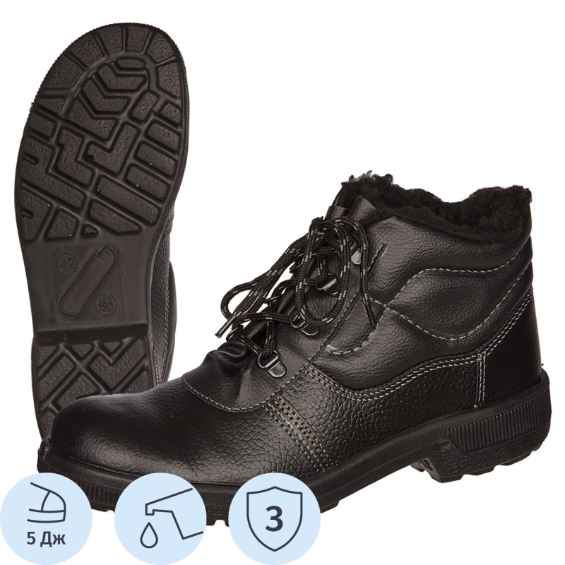 Утепленные ботинки унисекс на шнуровке, размер 46. Ботинки выполнены в черном цвете. Верх обуви изготовлен из натуральной кожи толщиной 2,0-2,2 мм. Материал дышит и долго служит. Утеплитель модели - искусственный мех. Стелька стандартной толщины выполнена из нетканого материала. Термопластичный подносок в передней части защищает от деформаций. Верхняя часть скреплена с полиуретановой подошвой литьевым методом, что придает ботинкам гибкость, герметичность. Однослойный полиуретан отличается долговечностью, легкостью. Подошва обеспечивает надежное сцепление с поверхностью, устойчивость во время ходьбы. За счет широкой колодки и мягкого канта ботинки комфортны в носке. Их можно непрерывно использовать в течение 9 часов. Обувь изготавливается по ГОСТ 12.4.137 и ГОСТ 28507. Предназначена для работы в производственных помещениях и на улице. Ботинки защищают ноги от механических воздействий, общепроизводственных загрязнений. Используются в строительстве, сельском хозяйстве, химической промышленности, нефтегазовом комплексе, металлургии. Предусмотрено заключение Минпромторга, которое позволяет вернуть до 20 % от расходов на обязательное социальное страхование от несчастных случаев на производстве и заболеваний, связанных с трудовой деятельностью. Рекомендации по эксплуатации: После окончания работ ботинки рекомендуется аккуратно очищать от загрязнений, чтобы исключить повреждение материалов. После мытья хранить в расправленном виде в помещении с вентиляцией. Рекомендуемое расстояние от приборов отопления - не меньше 0,5 м. Натуральную кожу нельзя обрабатывать органическими растворителями. Периодически ботинки необходимо смазывать обувным кремом, который производится по НД. Гарантия составляет 70 дней при условии, что обувь используется по назначению, соответствует размеру, полноте ноги. Цвет на изображении товара в интернет-магазине или в печатном каталоге может отличаться от оригинала из-за особенностей цветопередачи монитора. ЗАКОНОДАТЕЛЬНЫЕ И ТЕХНИЧЕСКИЕ ДОКУМЕНТЫ: