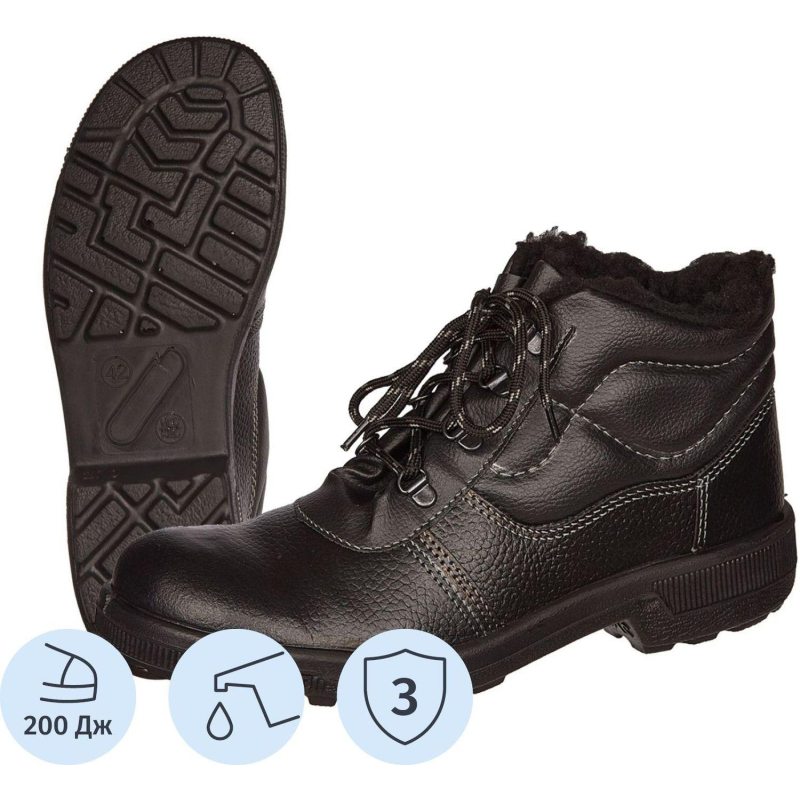 Ботинки утепленные Профи с искусственным мехом выполнены в черном цвете, размер 45. Универсальная модель, рекомендуемая для различных отраслей промышленности, таких как: нефтегазового комплекса, сельского хозяйства, строительной отрасли, металлургии и химической промышленности. Верх обуви выполнен из натуральной кожи толщиной 2,0-2,2 мм. Широкая колодка, мягкий кант обеспечивают комфорт при носке обуви. Стандартная полнота стельки. Особенность: прочная, легкая подошва из однослойного полиуретана, литьевого метода крепления. Дополнительную ударную прочность ботинкам придает металлическая вставка в носке. Обеспечивают защиту от механических воздействий, общепроизводственных загрязнений. Рекомендуются для работы на открытом воздухе, и в производственных помещениях. Обувь должна быть выдана в эксплуатацию по назначению, размеру и полноте. После окончания работы обувь должна быть очищена от загрязнений без повреждения материала верха и низа, протерта и оставлена в вентилируемом помещении в раскрытом и расправленном виде для проветривания на расстоянии не менее 0.5 м от обогревательных приборов. Не допускается чистить обувь органическими растворителями. Обувь должна систематически, один раз в неделю смазываться обувным кремом, изготовленным по НД. Допустимое время непрерывного пользования не более 9 ч. Гарантийный срок носки обуви составляет 70 дней с даты выдачи ее в эксплуатацию. Модель разработана с учетом требования ГОСТ 12.4.137 , ГОСТ 28507. Цвет на изображении товара в интернет-магазине или в печатном каталоге может отличаться от оригинала из-за особенностей цветопередачи монитора. ЗАКОНОДАТЕЛЬНЫЕ И ТЕХНИЧЕСКИЕ ДОКУМЕНТЫ:
