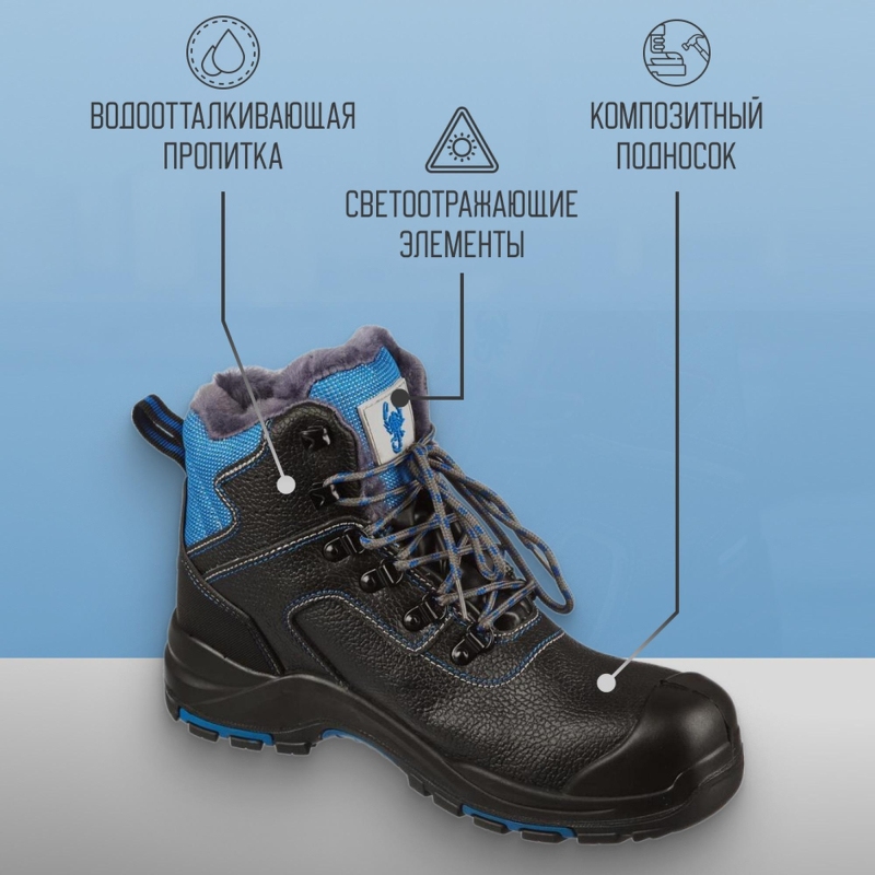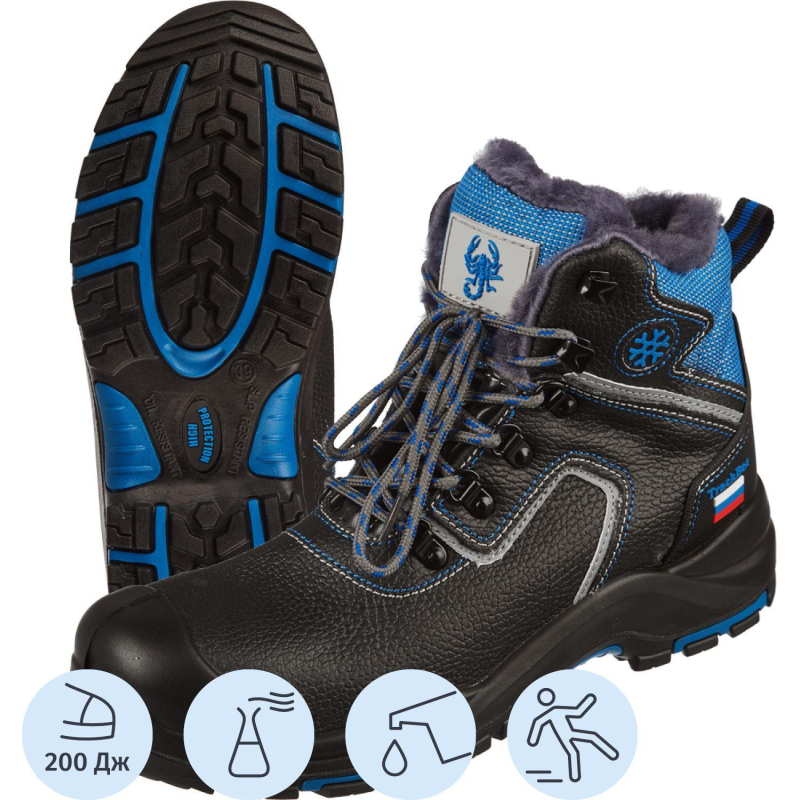 Ботинки мужские модели Трекбот 1801.1ПК черного цвета. Размер 42. Изготовлены из натуральной кожи. Застежка в виде шнурков. Подносок: композитный (поликарбонатный), защищает от ударов силой до 200 Дж. Утеплитель: натуральный мех. Подошва двухслойная полиуретан и нитрильная резина. Промежуточный слой из полиуретана обладает амортизирующими свойствами, гасит ударные нагрузки, а также придает обуви легкость, комфортность и повышенные теплозащитные свойства. Глухой клапан исключает попадание внутрь влаги, пыли и мелкий предметов. Объемная колодка специальной конструкции дает возможность работать целый день, не испытывая дискомфорта и усталости. Метод крепления подошвы: литьевой. Гарантийный срок - 70 дней. Климатический пояс - I, II, III и Особый. Предназначена данная модель от общих производственных загрязнений. Защитные свойства подошвы - маслобензостойкая, противоскользящая, обеспечивает защиту от кратковременного (60 с) контакта с поверхностями, нагретыми до температуры 300 градусов по цельсию, и общих производственных загрязнений. Модель универсальна, можно использовать в любой сфере деятельности. Соответствуют стандарту ГОСТ 12.4.137-2001.