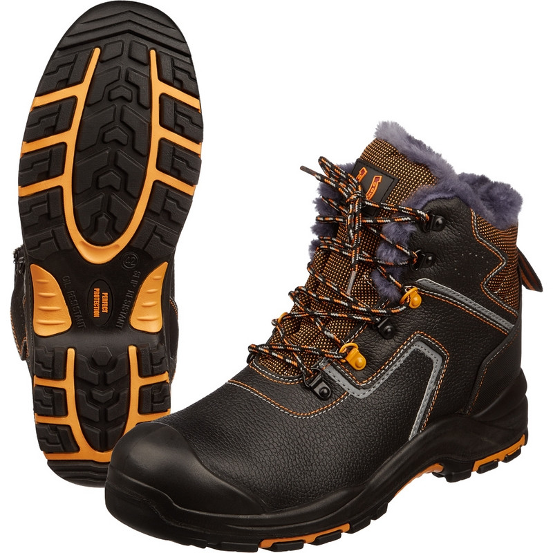 Ботинки утепленные Perfect Protection выполнены в черном цвете. Размер 43. Обувь рекомендована к использованию в строительстве, озеленении территории, ЖКХ, промышленности, логистике, нефтегазовой промышленности. Верх обуви выполнен из натуральной кожи. Рабочая обувь из натуральной кожи долговечна, устойчива к повреждениям, комфортна в носке. Натуральная кожа обладает воздухопроницаемыми свойствами, не дает ногам потеть. Фиксируется обувь на ноге с помощью шнурков, которые плотно обхватывают стопу, улучшая комфорт ношения. Утеплитель из натурального меха обладает высокими гигиеническими показателями: влагопоглощение и паропроницаемость, рассчитан на температурные режимы до -30 °C в сухой среде. Таким образом, данная обувь хорошо защищает от пониженных температур воздуха. Композитный (поликарбонатный) подносок защищает от ударов в носочной части силой 200 Дж, а кевларовая стелька - от проколов. Подошва из полиуретана с нитрилом (ПУ+НР): маслобензостойкая, кислотощелочестойкая, повышенная стойкость к контакту с нагретой поверхностью (до 300 °С). Подошва обладает прекрасным сопротивлением к скольжению, устойчива к деформации и стиранию. Промежуточный слой из полиуретана придает подошве легкость, а ходовой слой из нитрильной резины (нитрил) устойчив к многократному изгибу, деформации и истиранию, что увеличивает срок службы изделия. Литьевой метод крепления подошвы обеспечивает надежное скрепление, а значит долгий срок службы и высокую гибкость, тем самым уменьшая усталость ног. Обувь выдерживает температурные режимы от -40 до 300 °C (в течение 60 секунд). Соответствует стандартам ТР ТС 019/2011. Гарантийный срок составляет 70 дней при соблюдении правил ухода, эксплутации и хранения. Цвет на изображении товара в интернет-магазине или в печатном каталоге может отличаться от оригинала из-за особенностей цветопередачи монитора.