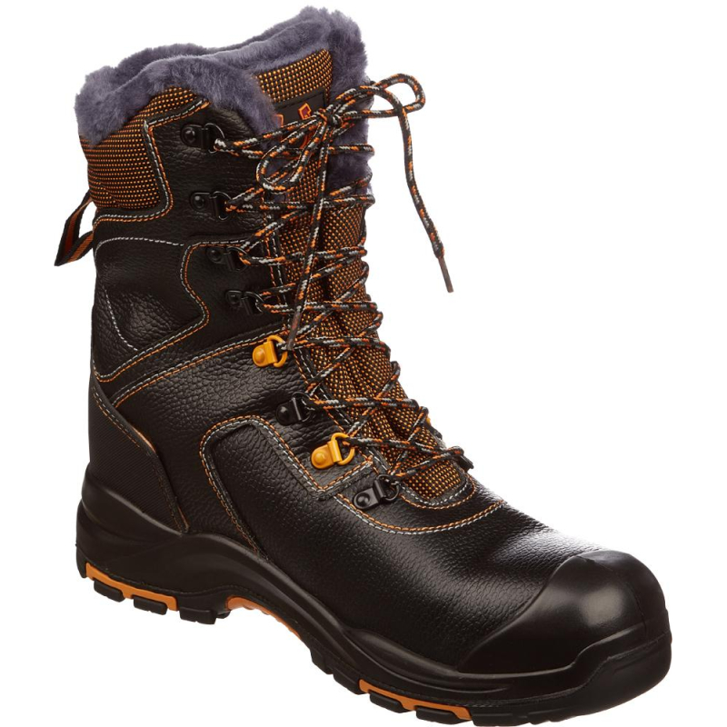 Утепленные ботинки унисекс Perfect Protection с высоким берцем и шнуровкой выполнены в черном цвете, имеют желтые элементы. Размер - 36. Верхняя часть изготовлена из натуральной кожи. Материал хорошо пропускает воздух, не боится механических повреждений, долго служит. Утеплитель из натурального меха обладает высокими гигиеническими свойствами, хорошо удерживает тепло в условиях низких температур (до -30 °C). Противоударный поликарбонатный подносок защищает ноги от ударов силой в 200 Дж, а кевларовая стелька - от проколов. Берцы надежно фиксируют голеностоп, не нарушая при этом естественную подвижность ноги. Подошва из полиуретана с нитрилом устойчива к воздействию масла, бензина, кислот, щелочей. Она выдерживает прямые контакты с нагретыми поверхностями (до 300 °C). Обувь выдерживает температурные режимы от -40 до 300 °C (в течение 60 секунд). Подошва не скользит и обеспечивает устойчивость при ходьбе. Полиуретан в промежуточном слое обеспечивает легкость. Нитрильная резина в ходовой части устойчива к многократным изгибам, деформациям, истиранию. Литьевой метод крепления подошвы обеспечивает надежное скрепление, а значит долгий срок службы и высокую гибкость, тем самым уменьшая усталость ног. Обувь производится в соответствии с ТР ТС 019/2011. Защищает от ударов в носочной части (Мун 200), низких температур (Тн), общих производственных загрязнений (З). Используется в строительстве, ЖКХ, нефтегазовой промышленности, в логистике и озеленении территории. На ботинки предоставляется гарантия 70 дней при условии соблюдения правил эксплуатации, ухода, хранения.