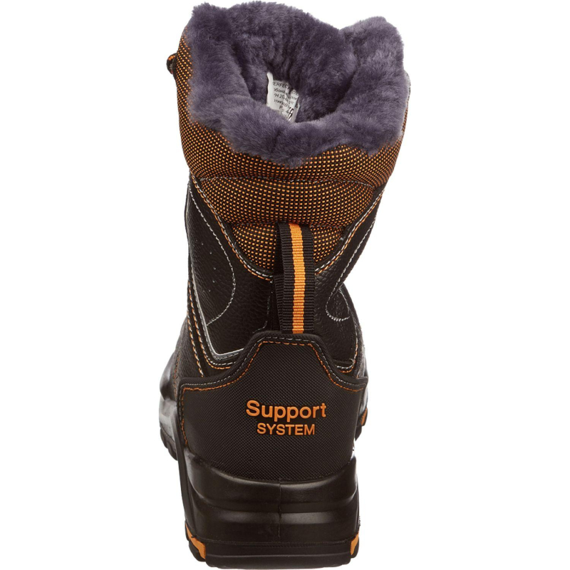 Ботинки модели Perfect Protection с высоким берцем подходят и для мужчин, и для женщин. Выполнены в черном цвете с желтыми элементами. Размер 37. Рекомендуется использовать в строительстве, ЖКХ, нефтегазовой промышленности, в логистике и озеленении территории. Верхняя часть изготовлена из натуральной кожи. Материал хорошо пропускает воздух, не боится механических повреждений, долго служит. Утеплитель из натурального меха обладает высокими гигиеническими свойствами, хорошо удерживает тепло в условиях низких температур (до -30 °C). Противоударный поликарбонатный подносок защищает ноги от ударов силой в 200 Дж. Берцы надежно фиксируют голеностоп шнурками, не нарушая при этом естественную подвижность ноги. Подошва из полиуретана с нитрилом устойчива к воздействию масла, бензина, кислот, щелочей. Она выдерживает прямые контакты с нагретыми поверхностями (до 300 °C). Обувь выдерживает температурные режимы от -40 до 300 °C (в течение 60 секунд). Подошва не скользит и обеспечивает устойчивость при ходьбе. Полиуретан в промежуточном слое обеспечивает легкость. Нитрильная резина в ходовой части устойчива к многократным изгибам, деформациям, истиранию. Литьевой метод крепления подошвы обеспечивает надежное скрепление, а значит долгий срок службы и высокую гибкость, тем самым уменьшая усталость ног. Кевларовая стелька защищает от проколов. Климатический пояс - 2,3,4 и Особый. Данная модель предназначена для защиты от ударов в носочной части (Мун 200), низких температур (Тн), общих производственных загрязнений (З). На ботинки предоставляется гарантия 70 дней при условии соблюдения правил эксплуатации, ухода, хранения. Соответствуют стандартам ТР ТС 019/2011. Цвет на изображении товара в интернет-магазине или в печатном каталоге может отличаться от оригинала из-за особенностей цветопередачи монитора.