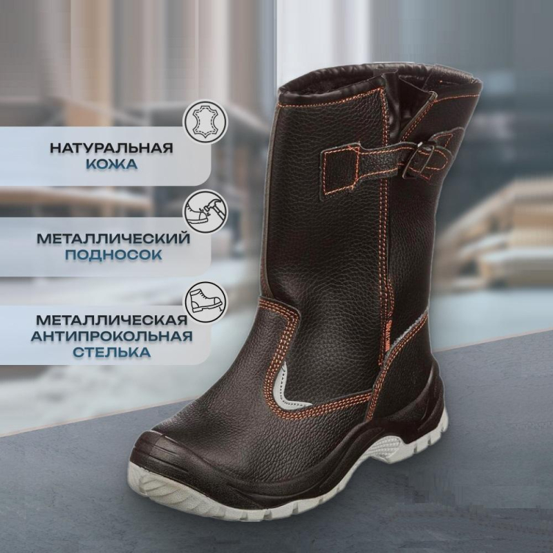 Сапоги модели Мистраль подойдут как для мужчин, так и для женщин. Выполнены в черном цвете. Размер 42. Обувь рекомендована к использованию в строительстве, озеленении территории, ЖКХ, промышленности, логистике, нефтегазовой промышленности. Рабочая обувь из натуральной кожи долговечна, устойчива к повреждениям, комфортна в носке. Утеплитель из искусственного меха хорошо держит тепло, рассчитан на температурные режимы до -20 °C в сухой среде. Противоударный металлический подносок защищает от ударов силой до 200 Дж. Полиуретановая с термополиуретаном подошва (ПУ+ТПУ) устойчива к воздействию химических факторов (нефть, масла, щелочь и кислота). Подошва обладает прекрасным сопротивлением к скольжению, устойчива к воздействию температур от -35 до 130 °C. Промежуточный слой из полиуретана придает подошве легкость, а ходовой слой из термополиуретана увеличивает срок службы за счет устойчивости к многократному изгибу, деформации и истиранию. Подошва обуви скреплена литьевым методом крепления. Данный метод обеспечивает надежное, герметичное крепление слоев подошвы, а значит, долгий срок службы и высокую гибкость, тем самым уменьшая усталость ног. Металлическая стелька защищает от проколов. Данная модель маслобензиностойкая. Защитные свойства обуви: Мун 200 (защита от ударов в носочной части энергией 200 Дж), Тн (защита от пониженных температур воздуха), З (защита от общих производственных загрязнений), а так же от кислот и щелочей. Гарантийный срок после выдачи обуви составляет 70 дней при соблюдении правил ухода, эксплутации и хранения. Соответствуют стандартам ТР ТС 019/2011. Цвет на изображении товара в интернет-магазине или в печатном каталоге может отличаться от оригинала из-за особенностей цветопередачи монитора.