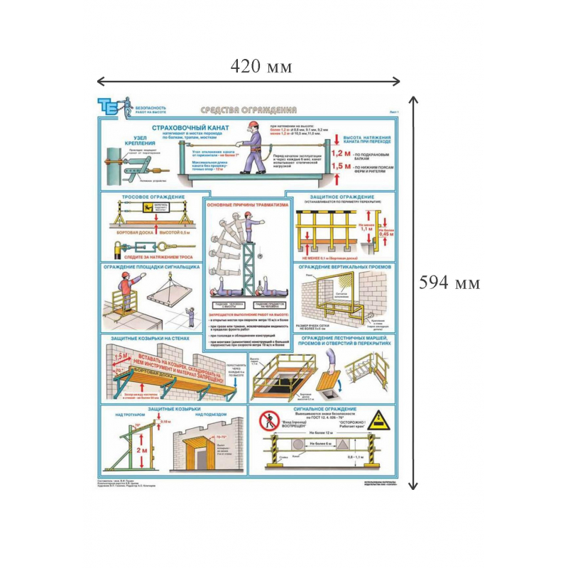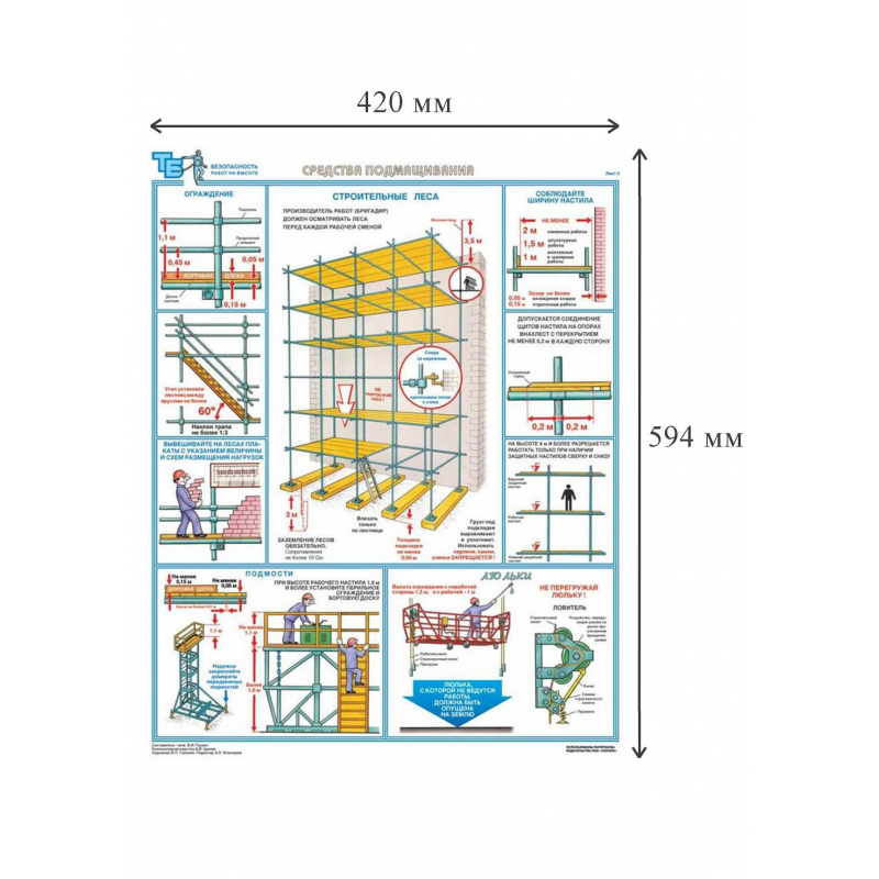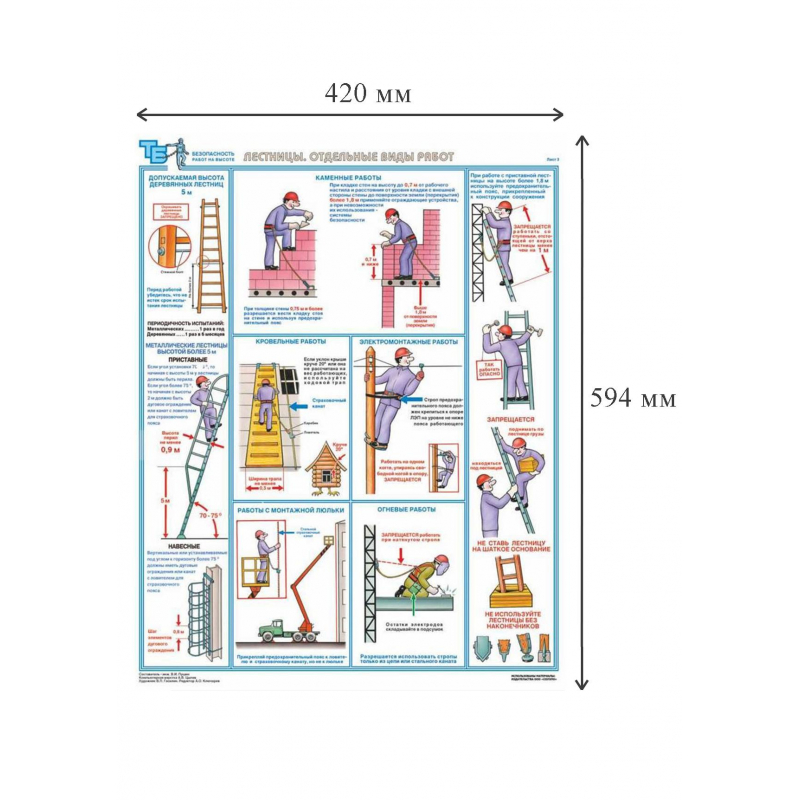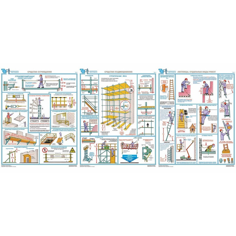 Наименование по ГОСТу: 'Безопасность работ на высоте'. В комплект входят три листа размером 420x594 мм. Материал изготовления: ламинированная бумага. Страна происхождения: Российская Федерация.