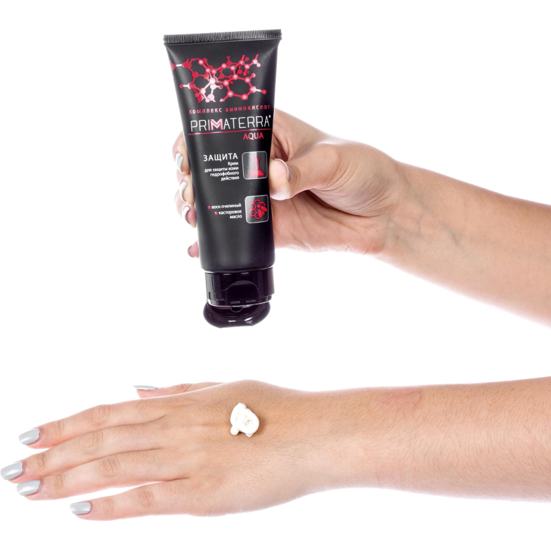 Крем защитный Primaterra Aqua для рук гидрофобный 100 мл предназначен для эффективной защиты кожи при постоянных контактах с водой или водосодержащими рабочими веществами: различными кислотами, щелочью, солями, синтетическими моющими и дезинфицирующими средствами, органическим спиртом, смазочно-охлаждающими и тормозными жидкостями, цементом, бетоном, глиной, известью, тосолом, фенолом, щелочно-масляными эмульсиями и другими водорастворимыми загрязняющими веществами. Обладает высокой водоотталкивающей способностью (тип эмульсии: вода в масле). Такой вид эмульсии более физиологичен, т.к. при нанесении диспергированная вода впитывается, и на коже остается тончайший масляный барьер, родственный липидам кожи. Обратная эмульсия трудно смывается водой, препятствует потери кожных липидов. Обеспечивает лучшую защиту, создает дополнительный барьерный слой, уменьшая испарение влаги из глубинных слоев кожи. В состав входит сквалан, ланолин, воск пчелиный, кокосовое масло, масло подсолнечника, которые эффективно защищают от неблагоприятного воздействия на кожу водных растворов. Благодаря входящему в состав комплексу аминокислот Prodew 400, крем оказывает увлажняющее действие на кожу. Витамины В3, С, Е, Д-пантенол и аллантоин обеспечивают антиоксидантное и регенерирующее действие. Крем легко наносится на кожу, не создает неудобства при работе. Повторяет естественную гидролипидную мантию эпидермиса (вторая кожа). Распределяется тонким защитным слоем на коже, позволяя ей дышать и не смешивается с внешними водными средами. Содержит комплекс аминокислот, который: 1. Восстанавливает и сохраняет собственные защитные свойства кожи. 2. Составляет основу натурального увлажняющего фактора (НУФ; NMF). 3. Поддерживает должную пластичность кожи, защищая ее от повреждений.4. Обеспечивает нормальную функцию гидролитических ферментов в процессе обновления клеток. Не содержит запрещенных, вредных компонентов. Расход 0,5-1 мл на одно применение. Условия хранения: избегать попадания прямых солнечных лучей. Срок годности 30 месяцев с даты изготовления/12 месяцев с момента вскрытия. Соответствует стандартам ТР ТС 019/2011, ГОСТ 31460-2012, СТ 1. Не содержит вредных веществ - силиконов, минеральных абразивов, горючих и летучих органических растворителей по ТР ТС 019/2011 в части безопасности средств дерматологических. ЗАКОНОДАТЕЛЬНЫЕ И ТЕХНИЧЕСКИЕ ДОКУМЕНТЫ: