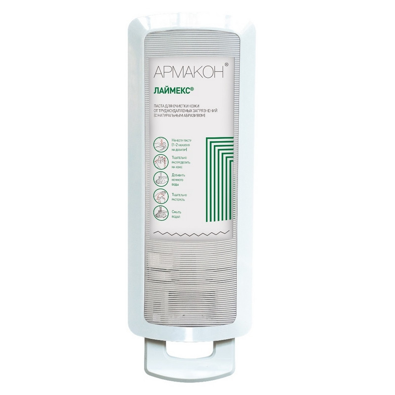 Очищающая паста "Армакон Лаймекс" - паста для очистки кожи от трудноудаляемых загрязнений (с натуральным абразивом). Предназначена для очищения кожи от нефтепродуктов, масел, металлической пыли, графита, смазочных веществ, масляных красок, битума, сажи и так далее. Обеспечивает бережное и эффективное очищение кожи благодаря сбалансированной комбинации ПАВ и натурального абразива. В качестве абразива используется мука из измельченной скорлупы грецкого ореха, изготовленный с использованием современной вакуумной технологии, исключающей образование острых частиц. Входящие в состав пасты алюмосиликат магния и ксантановая камедь эффективно адсорбируют трудносмываемые загрязнения и облегчают их удаление. Паста содержит инактиваторы, нейтрализующие вредное воздействие солей тяжелых металлов и химических раздражителей. Ухаживающий комплекс из растительного масла, олеиновой кислоты и касторового масла эффективно смягчают и увлажняют кожу. Удаляет неприятные запахи с кожи, легко и без остатка смывается водой. Подходит для частого применения. Состав соответствует требованиям регламента ЕС № 1223/2009 от 30 ноября 2009 г. Не содержит растворителей, красителей, силиконов и парабенов. Упаковка: 1000 мл. Условия хранения: избегать попадания прямых солнечных лучей. Данный товар может храниться при отрицательной температуре без потери своих свойств (выдерживает 3 цикла заморозки до -50 °C). Срок годности от даты изготовления 24 месяца. Подходит к дозатору для средств защиты кожи Армакон Топфит (артикул 961989).Соответствует стандартам ТР ТС 019/2011, ГОСТ 31696-2012. ЗАКЛЮЧЕНИЕ МИНПРОМТОРГА РФ ВЫ МОЖЕТЕ СКАЧАТЬ ЗДЕСЬ: