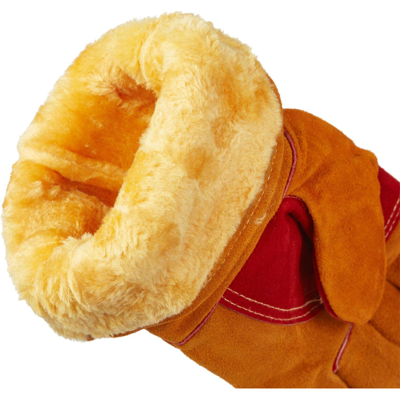 Краги спилковые утепленные пятипалые желтые меховые предназначены для защиты рук от механического воздействия, искр и брызг расплавленного металла в условиях низких температур. Швы - нить Кевлар, усилены кожаными вставками. Утеплены искуственным мехом. Размер - 10,5 (XL). Ладонная часть и большой палец усилены накладками из спилка. Материал: спилок шлифованный кожевенный КРС, сорт АВ. Утеплитель: искусственный мех желтого цвета, плотность 750 г/кв.м. Цвет на изображении товара в интернет-магазине или в печатном каталоге может отличаться от оригинала из-за особенностей цветопередачи монитора.