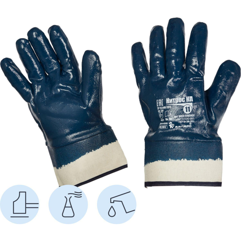 Трикотажные рабочие перчатки хб Нитрос КП с полным нитриловым покрытием, размер 11 (XXL), манжета выполнена в виде краги. Перчатки износостойкие, анатомической формы. Предназначены для тяжелых работ с металлоконструкциями, строительными, абразивными и другими материалами, а также для работ с различными инструментами. Хорошо зарекомендовали себя в условиях контакта с минеральными маслами, кислотами, щелочами, нефтью, нефтепродуктами и водой. Срок эксплуатации перчаток в 4-10 раз больше, чем у брезентовых, комбинированных рукавиц, рукавиц КР, х/б с брезентовым наладонником, рукавиц из винилискожи, рукавиц МБС. Основа: 100% хлопок. Рисунок нанесения - полный тройной облив. Гарантийный срок - 54 месяца. Соответствуют стандартам: ГОСТ 12.4.183-91, ГОСТ 12.4.220-2002, ГОСТ EN 388-2019, ТР ТС 019/2011, ГОСТ P ЕН 1149-5-2008. Эксплуатационные уровни: EN 388-4232Е. Маркировка: Ми, Мп, К80, Щ50, Нс, Нм, Вн. Цвет на изображении товара в интернет-магазине или в печатном каталоге может отличаться от оригинала из-за особенностей цветопередачи монитора.