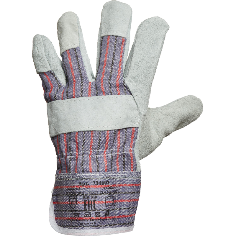 Перчатки рабочие с полным покрытием спилком указательного и большого пальца. Манжета выполнена в виде краги. Универсальный размер. Предназначены для защиты рук от истирания и механических воздействий. Применение: строительство, транспорт, автомобильная промышленность, монтажные работы, погрузочно-разгрузочные работы. Количество в упаковке: 1 пара. Соответствие стандартам: ГОСТ 12.4.252-2013, ГОСТ 12.4.183-91, ГОСТ EN 388-2003, ГОСТ EN 420-2003, ТР ТС 019/2011. Внимание! Производитель может изменить цвет перчаток без дополнительного уведомления. Цвет на изображении товара в интернет-магазине или в печатном каталоге может отличаться от оригинала из-за особенностей цветопередачи монитора.