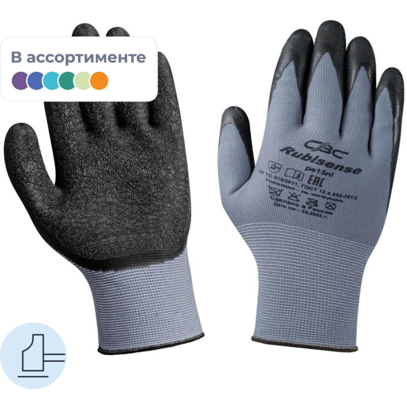 Перчатки защитные СВС полиэфирные с латексным покрытием в ассортименте (неполный облив один слой, размер 8-9 (L)). Подходят для работ, связанных с опасностью пореза и повреждения пальцев при работе с острыми и колющими предметами. Обеспечивают хорошее сцепление с сухими, и влажными и скользкими поверхностями, обладают высокой механической прочностью. Тип садово-строительные, для работ, требующих повышенной чувствительности пальцев. Изготовлены из полиэфира и покрыты рельефным латексом. Перчатки имеют эластичные манжеты, устойчивы к износу. Класс вязки 15. Стандарты: ГОСТ 12.4.252-2013, ГОСТ 12.4.183-91, ТР ТС 019/2011. Товар поставляется в нескольких вариантах цвета/дизайна (без возможности выбора). Цвет на изображении товара в интернет-магазине или в печатном каталоге может отличаться от оригинала из-за особенностей цветопередачи монитора.