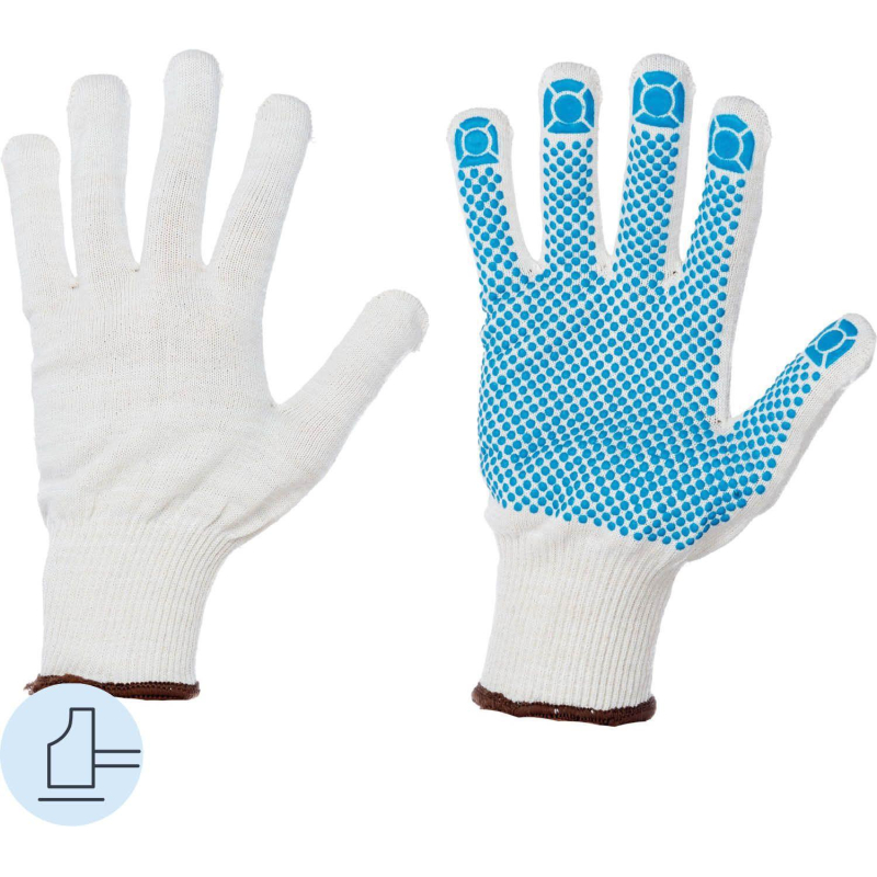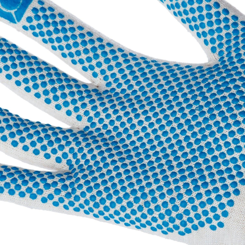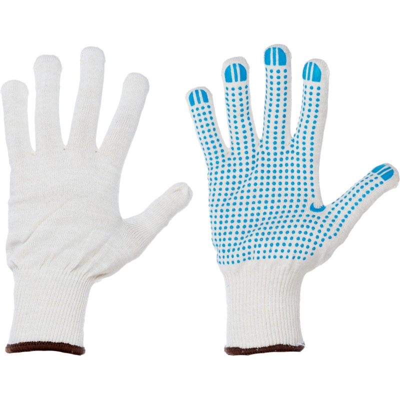 Рабочие перчатки хб трикотажные из смешанной пряжи с покрытием точка для защиты от мелких механических повреждений и загрязнений, универсальный размер, с вязаной манжетой. Оптимальная толщина трикотажа обеспечивает высокую чувствительность рук при выполнении точных работ. Манжета плотно прилегает к руке. Ручной оверлок не позволяет краю перчатки распускаться и способствует более долгой службе. Не перекручиваются, вязка ровная, без зацепок и выпущенных петель, при растягивании не распускаются, однослойные. От аналогичных перчаток на трикотажной основе отличается большей чувствительностью, что обеспечивает более высокую ловкость в работе. Такие рабочие перчатки пригодятся не только для складских, ремонтных работ, но и рыболовам, огородникам, и охотникам. Положите их в автомобиль и, в случае необходимости, вы защитите свои руки от травм и грязи. Вес одной пары - 52 г. Класс вязки: 13. Основа: 70% хлопок, 30% полиэфир. Соответствует стандартам: ГОСТ 12.4.252-2013, ТР ТС 019/2011, ГОСТ 12.4.183-91. Количество пар в упаковке: 10. Количество упаковок в транспортном коробе: 50. Цвет на изображении товара в интернет-магазине или в печатном каталоге может отличаться от оригинала из-за особенностей цветопередачи монитора. ЗАКОНОДАТЕЛЬНЫЕ И ТЕХНИЧЕСКИЕ ДОКУМЕНТЫ: