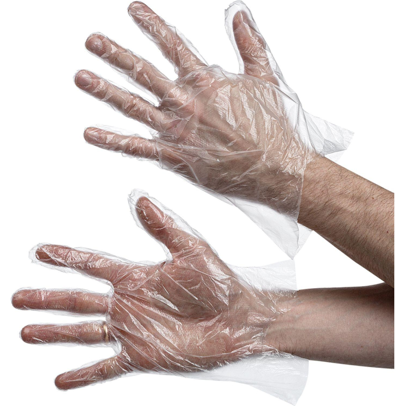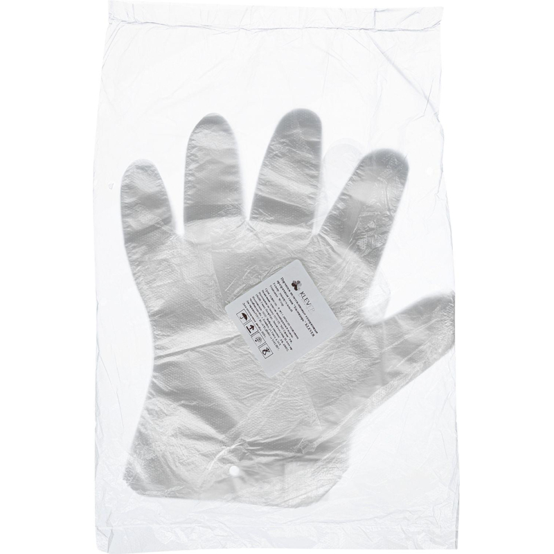Перчатки одноразовые Klever полиэтиленовые неопудренные прозрачные (10000 штук/5000 пар в упаковке) с перфорацией для крепления. Одноразовые универсальные перчатки изготовлены из полиэтилена толщиной 5 мкм. Размер перчаток универсальный: ширина заготовки 255 мм. Толщина ладони 5 мкм. Толщина пальцев 5 мкм. Длина перчаток 260 мм. Текстурированная рабочая поверхность обеспечивает более надежное удержание инструмента в руке. Имеют перфорацию для крепления в торговом зале. Неопудренные, не оставляют белых следов от крахмала. В коробе 5000 пар. Разрешен контакт с пищевыми продуктами на основании декларации соответствия. Цвет на изображении товара в интернет-магазине или в печатном каталоге может отличаться от оригинала из-за особенностей цветопередачи монитора.