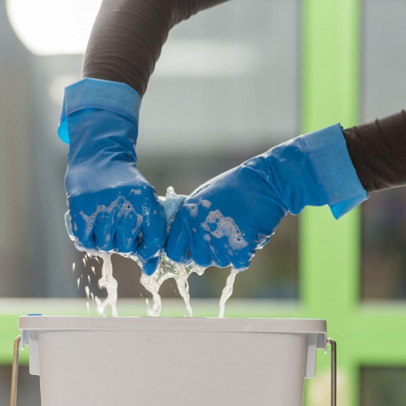 Перчатки латексные Vileda Professional многоцелевые повышенная прочность синие (размер 9.5-10, XL, 102590). Особенности и преимущества: - Высокая сопротивляемость химикатам и моющим средствам - класс Type B - KLP по стандарту EN ISO 374-1. - Износостойкие и долговечные - протестированы на механическую защиту тип 1010Х по стандарту EN 388. - Защищают от бактерий, возбудителей грибковых заболеваний и вирусов. Протестированы по стандарту EN 374-5 на герметичность. - Соответствуют EAC ТР ТС 019/2011. - СЕ Категория III - максимальная защита от рисков по европейским стандартам. - Цветовая кодировка для исключения перекрестных загрязнений. - Высокая прочность натурального латекса и удобная анатомическая посадка для максимального комфорта. - Хлопковое напыление внутри для комфорта во время работы и легкого надевания и снятия перчатки. - Плотные и эластичные, приятные на ощупь. - Не имеют резкого специфичного запаха резины. - Рельефная сетчатая структура на ладонях и пальцах для надежного захвата. - Аккуратный волнообразный обрез манжеты. - Можно стирать и сушить. Количество в упаковке: 1. Количество в транспортном коробе: 50. Перчатки являются маломерными, размер перчаток - XL (9.5-10). Разрешен контакт с пищевыми продуктами. Цвет на изображении товара в интернет-магазине или в печатном каталоге может отличаться от оригинала из-за особенностей цветопередачи монитора.