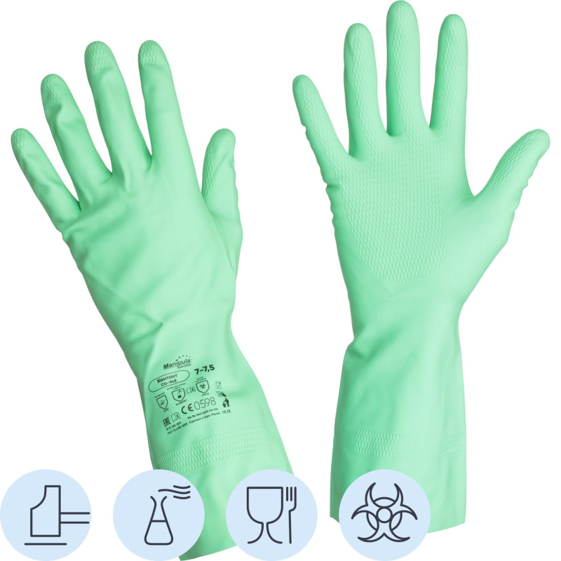 Перчатки Контакт (L-F-02) - латексные герметичные перчатки, стойкие к кислотам и щелочам повышенных концентраций, органическим растворителям и спиртам, растительным жирам. Длина перчаток 32 см. Вес пары: 104 г. Выполнено хлорирование поверхности для увеличения механической прочности и снижения аллергических реакций на латексные протеины. Текстура рабочей поверхности ?соты? обеспечивает отличный сухой и влажный захват. Хлопковое напыление на внутренней поверхности для удобства надевания и использования. Перчатки Контакт допущены к контакту с пищевыми продуктами. Для предотвращения возникновения микробной среды и устранения неприятных запахов после производственного процесса перчатка прошла антибактериальную обработку Sanitized Actifresh. Количество пар в упаковке: 1 пара. Количество упаковок в транспортной коробке: 120.Соответствует регламенту ЕС 1935/2004. Разрешен контакт с пищевыми продуктами. Перчатки являются большемерными, размер перчаток - XL (10-10.5). Цвет на изображении товара в интернет-магазине или в печатном каталоге может отличаться от оригинала из-за особенностей цветопередачи монитора.