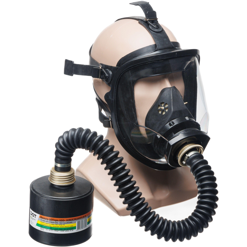 Противогаз фильтрующий Дот 600 (универсальный размер, степень защиты A2B2E2К2P3RD) Противогаз Дот 600 марки A2B2E2К2P3RD обеспечивает защиту от вредных веществ различной химической природы (А -органические газы и пары с температурой кипения выше 65 °С, В - неорганические газы и пары, Е - кислые газы и пары, К - аммиак и его органические производные, Р - аэрозоли, D - устойчивость к запылению). В состав противогаза входит: панорамная маска, комбинированный фильтр в металлическом исполнении, соединительная трубка, сумка для хранения и ношения противогаза. Область применения: химическая и нефтехимическая отрасль, металлургия, машиностроение, деревообработка, фармацевтика, пищевая промышленность, строительство. А также производства с высоким содержанием аварийно химических опасных веществ (в виде газов паров или аэрозолей) в воздухе рабочей зоны. Гарантийный срок хранения - 5 лет. Перед применением необходимо ознакомиться с руководством по эксплуатации. Соответствует стандартам ГОСТ 12.4.121-2015, ТР ТС 019/2011.