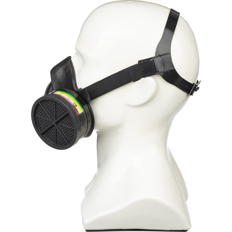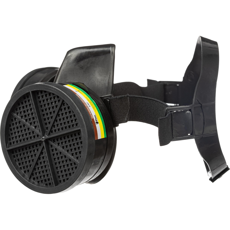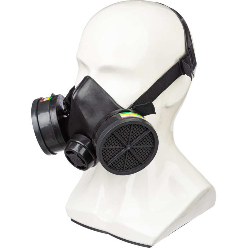 Полумаска РПГ-67 марка АВЕК1 . Изолирующая полумаска РПГ-67 предназначена для защиты органов дыхания человека от вредных газо- и парообразных веществ. Она рекомендуема для использования против органических, неорганических, кислых газов и паров. Полумаска защищает от паров и газов с температурой кипения выше 65°С, таких как бензол, ксилол, толуол, бензин, керосин, эфиры, спирты, анилин и тетраэтилсвинец. Рабочий интервал температур составляет от -40°С до +55°С. Не рекомендуется использовать в горячих цехах из-за превышения температурного режима. Полумаска изготовлена из термопластичного изолирующего материала. Она оснащена эластичным пластиковым оголовьем, обеспечивающим надежную фиксацию. В боковых отверстиях маски закреплены манжеты из резины с клапанами вдоха для установки сменных противогазовых фильтров различных марок. Нижнее отверстие маски защищено предохранительным экраном и содержит клапан выдоха. Функциональные и отличительные особенности: - Устойчивость к вредным газам и парам с температурой кипения выше 65°С. - Возможность использования с фильтрами различных марок. - Эластичное пластиковое оголовье для комфортной посадки. - Манжеты из резины с клапанами вдоха. - Клапан выдоха с предохранительным экраном. Полумаска применяется при концентрации вредных веществ в воздухе до 100 мг/м³. Степень защиты достигает 10 ПДК. Срок хранения составляет 3 года, а вес маски - 0,325 кг. Товар поставляется в нескольких вариантах цвета (без возможности выбора). Полумаска РПГ-67 соответствует стандартам ГОСТ 12.4.235-2012, ГОСТ 12.4.235-2019 и ТР ТС 019/2011. Фильтры в комплекте отсутствуют. Тип крепления: байонет.