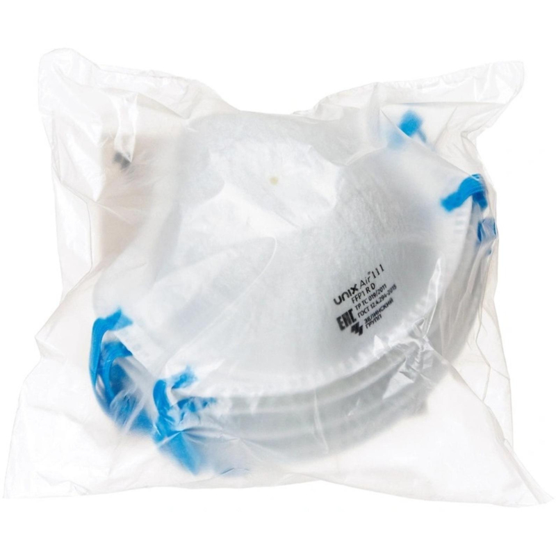 Респиратор Unix Air 112 противоаэрозольный без клапана FFP2 RD до 12 ПДК предназначен для защиты от аэрозолей и различных видов пыли (минеральной, металлической, животной, растительной, синтетических моющих средств и др.). Условия эксплуатации: при объемном содержании кислорода в воздухе не менее 17%, концентрация аэрозолей в воздухе для Р2 не более 200 мг/м3, при температуре окружающей среды от 0 до 40 °С, ГСХ - 3 года. Класс фильтрующей эффективности - FFP2 класс средней эффективности, вредные аэрозоли в виде пыли, дыма и тумана до 10 ПДК. Тип респиратора - чашеобразный. Респиратор совместим с защитными очками, щитками, касками. Один универсальный размер. Многоразовое использование. Легкая, масса без клапана - не более 9 г. Количество в промежуточной упаковке по 5 шт, в гофроящике (592x392x285) - 240 шт. Особая форма полумаски в области переносицы гарантирует плотное и стабильное прилегание, широкая полоса обтюрации и мягкий внутренний слой корпуса полумаски обеспечивают хорошее прилегание и удобную посадку на лице, формованная конструкция внешнего слоя корпуса создает каркасность полумаски, препятствуя соприкосновению с лицом при вдохе, эластичное оголовье с четырьмя точками крепления обеспечивает надежную фиксацию полумаски на лице, уплотнитель по внутреннему периметру полумаски обеспечивает плотное прилегание к лицу и предотвращает подсос воздуха в подмасочное пространство. Область применения: применяется в металлургии, строительстве, машиностроении, судостроении, керамическом производстве, производстве кирпича, лесопильных предприятиях, работе в карьерах и открытых разрезах, агрохимия и др. Соответствует требованиям ТР ТС 019/2011, ГОСТ 12.4.294-2015. ЗАКОНОДАТЕЛЬНЫЕ И ТЕХНИЧЕСКИЕ ДОКУМЕНТЫ: