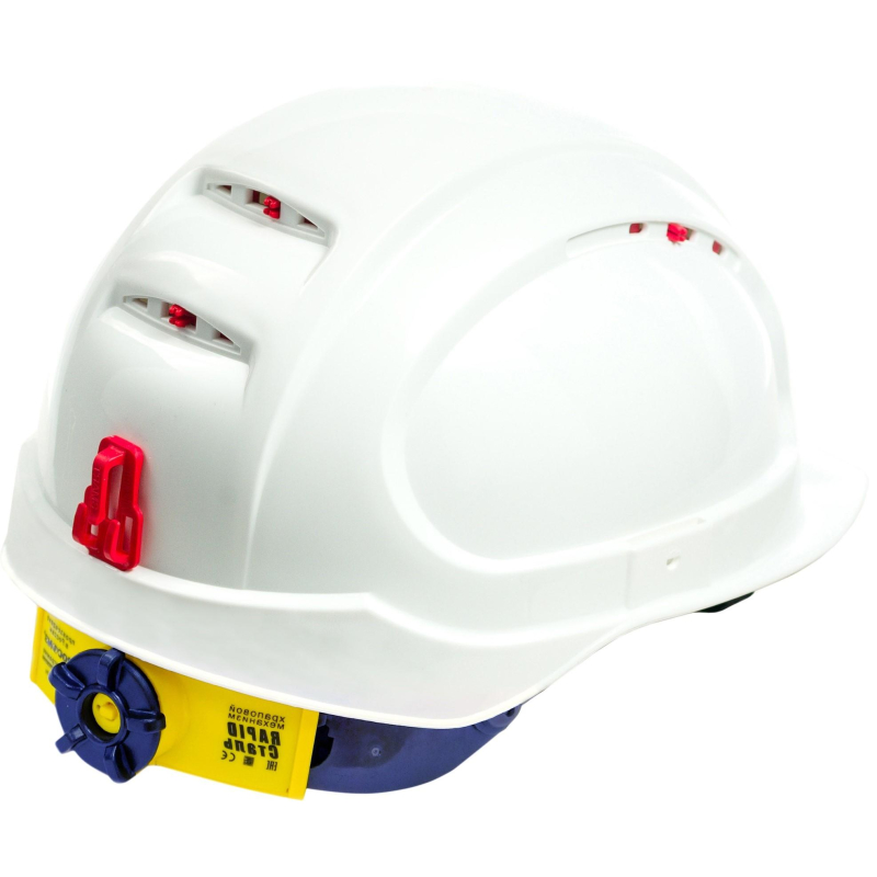 Каска РОСОМЗ СОМЗ-19 Зенит Rapid белая (719817) изготовлена из ABS-пластика. Данная каска предназначена для высотных работ и рекомендована Приказом Минтруда России № 782Н от 16.11.2020 г. Основная функция каски - защита головы работающих от механических повреждений, влаги и брызг агрессивных жидкостей. Внутренняя оснастка Эталон оснащена плавной регулировкой Rapid и включает 8 точек крепления оголовья. Эргономичный зацеп-ловитель обеспечивает быстрое отсоединение каски. Система вентиляции создает нормальную циркуляцию воздуха внутри каски, обеспечивая увеличенную вентиляцию в четырех вариантах. Укороченный козырек увеличивает поле зрения, а также предусмотрена увеличенная защита затылка, что обеспечивает высокую эргономику и удобство. Каска оснащена литым подбородником и имеет УФ-индикаторы в виде вентиляционных заглушек. Съемный держатель для очков и пазы в корпусе каски позволяют использовать защитные лицевые щитки и наушники, крепящиеся на каске. В комплект входят подбородочный ремень, обтюратор и затылочный демпфер. Каска функционирует в температурном режиме от -50°C до +50°C и весит 235 г. Каска соответствует стандартам ГОСТ 12.4.128-83 и ТР ТС 019/2011.